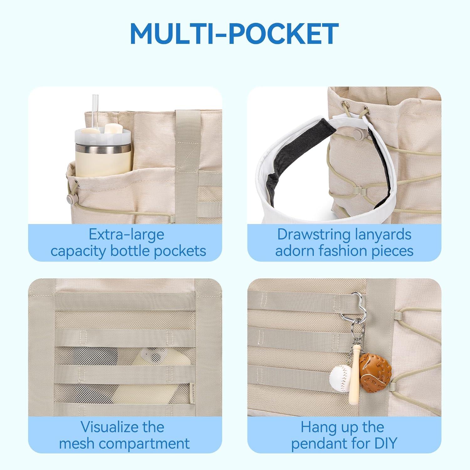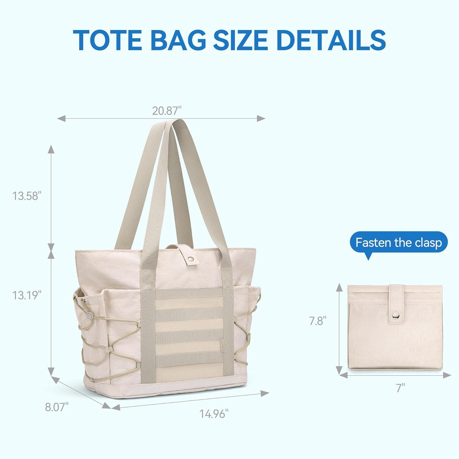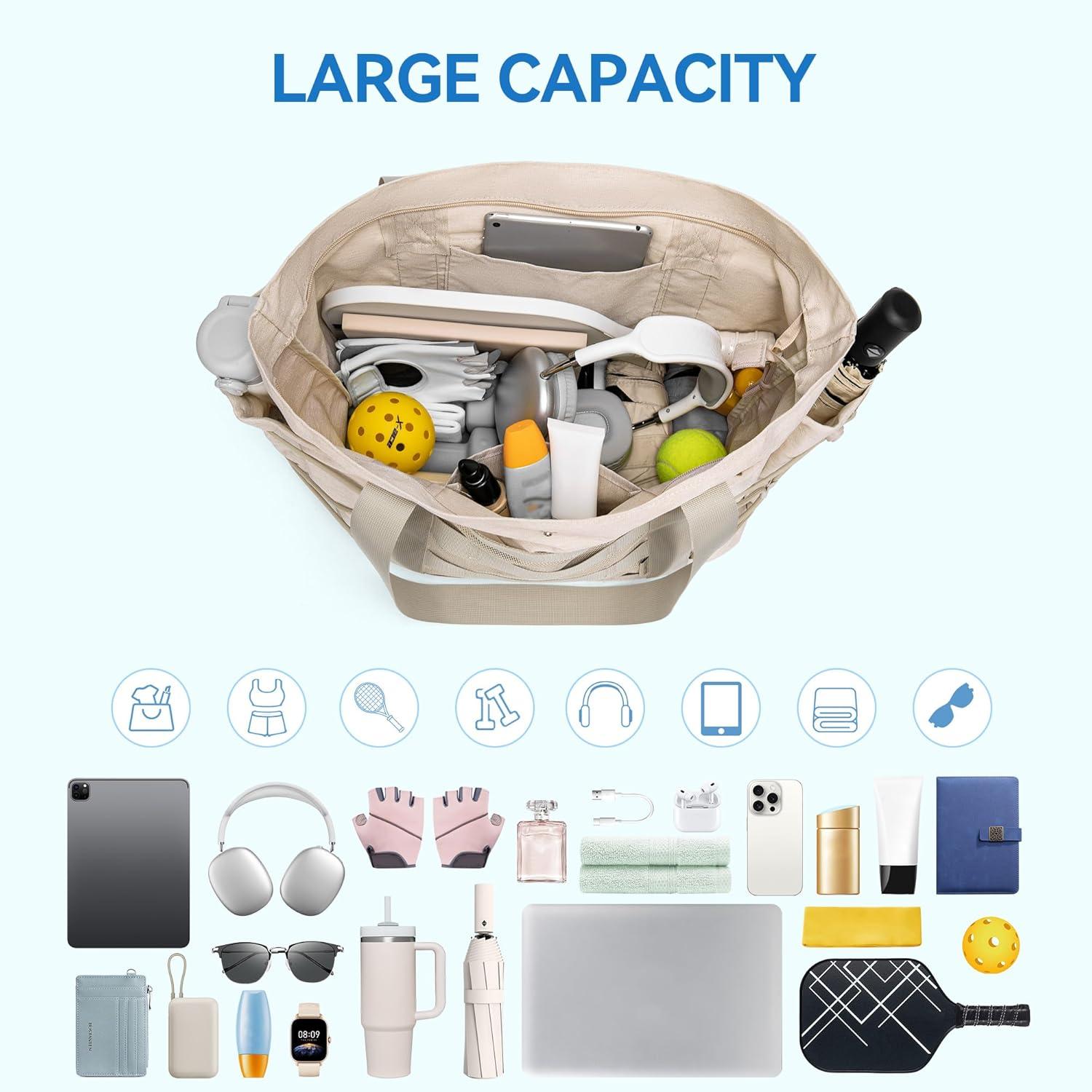 BOSTANTEN Travel Tote Bags for Women Foldable Beach Bag Waterproof Zipper Gym Sports Shopping Bag Trolley Sleeve(A-off-white)