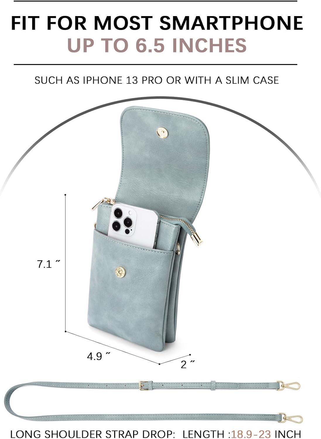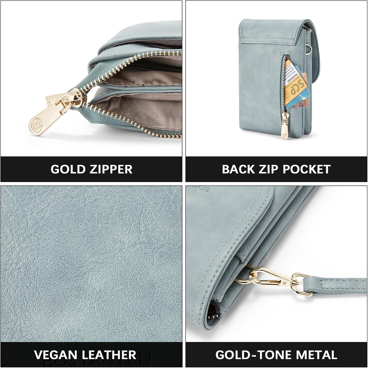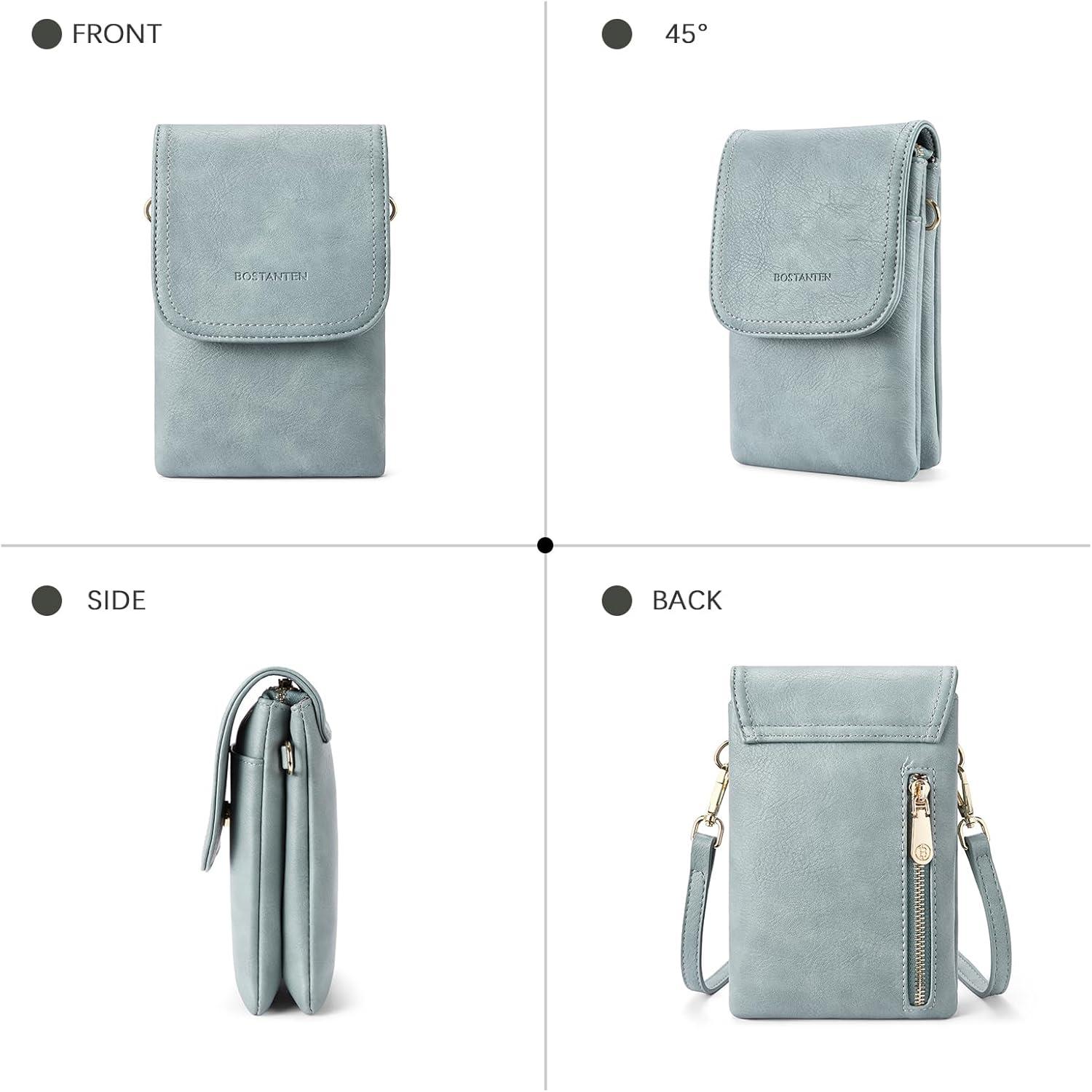 BOSTANTEN Vegan Leather Small Crossbody Bags for Women Designer Cell Phone Bag Wallet Purses Adjustable Strap(Denim Blue)