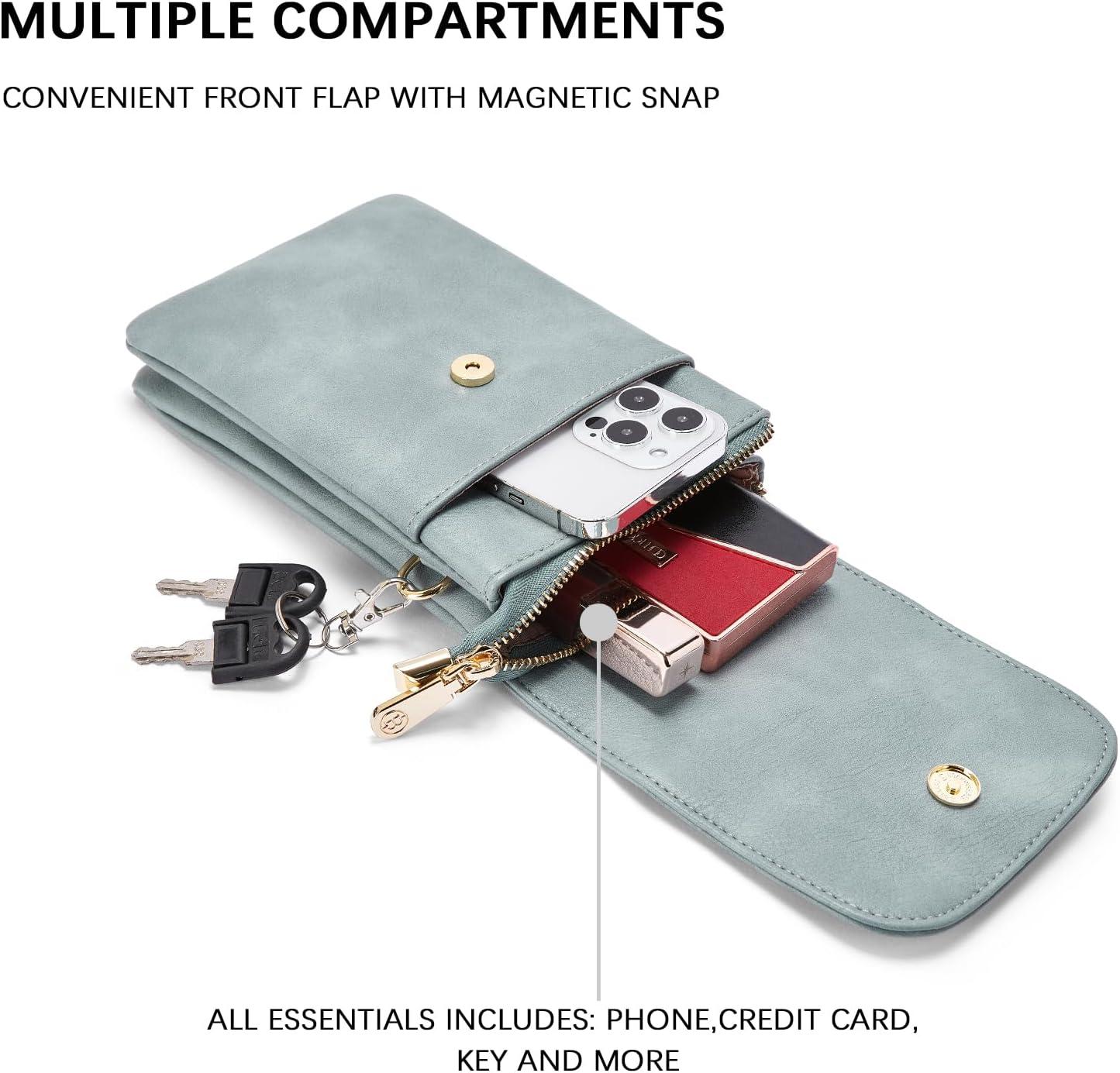 BOSTANTEN Vegan Leather Small Crossbody Bags for Women Designer Cell Phone Bag Wallet Purses Adjustable Strap(Light Green)