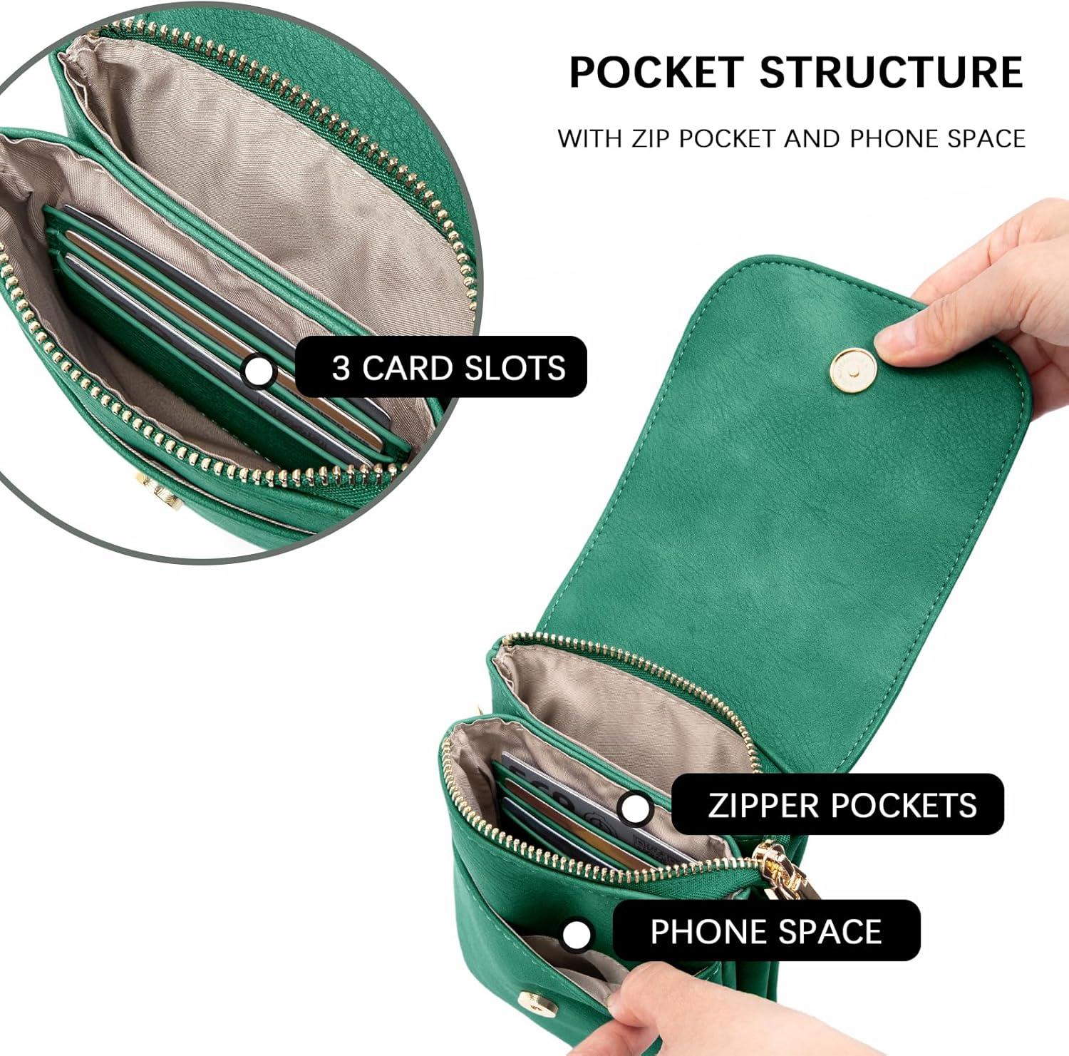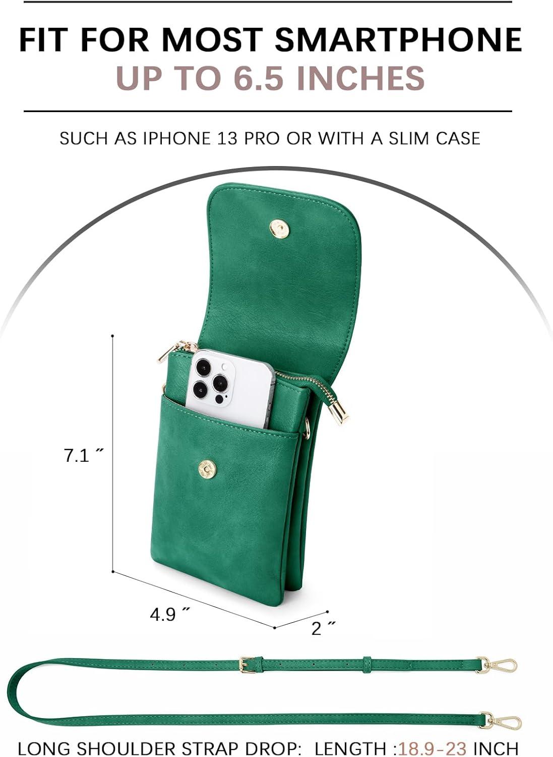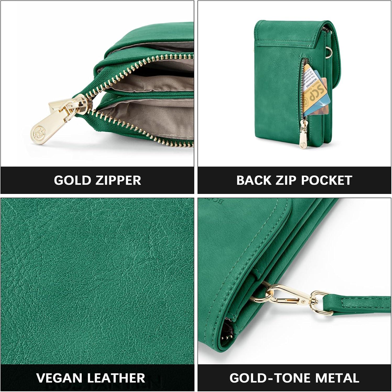 imageBOSTANTEN Vegan Leather Small Crossbody Bags for Women Designer Cell Phone Bag Wallet Purses Adjustable StrapLight Green