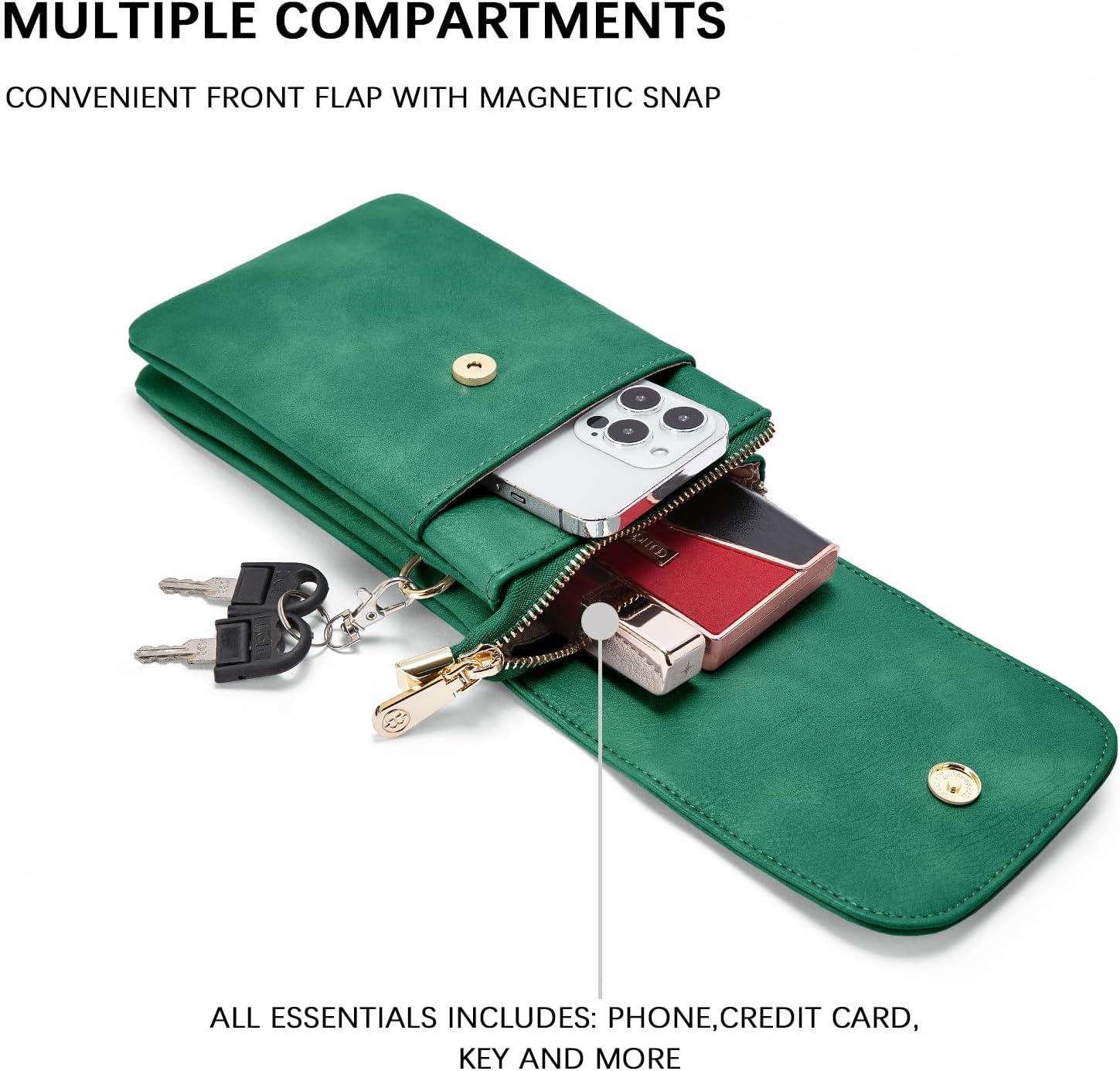 BOSTANTEN Vegan Leather Small Crossbody Bags for Women Designer Cell Phone Bag Wallet Purses Adjustable Strap(Light Green)