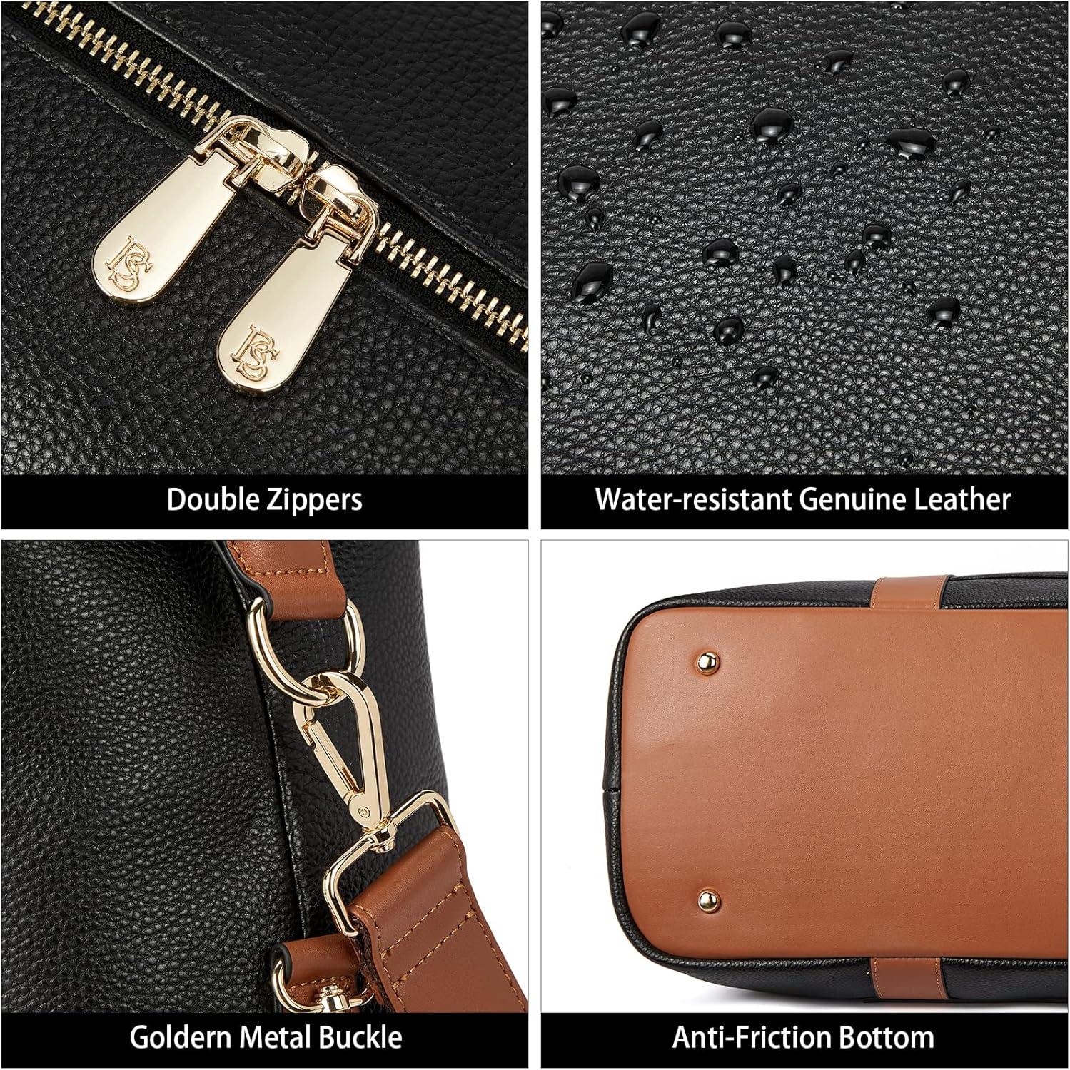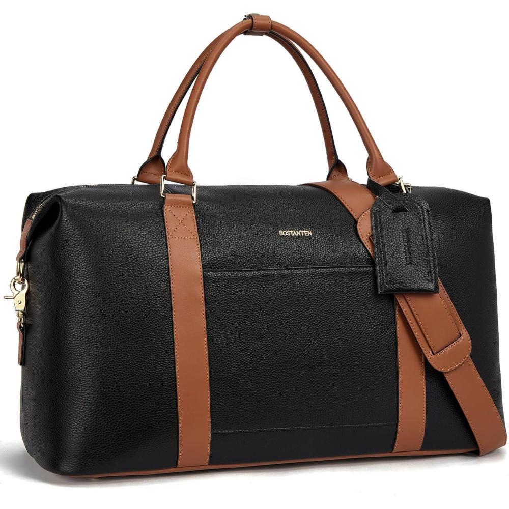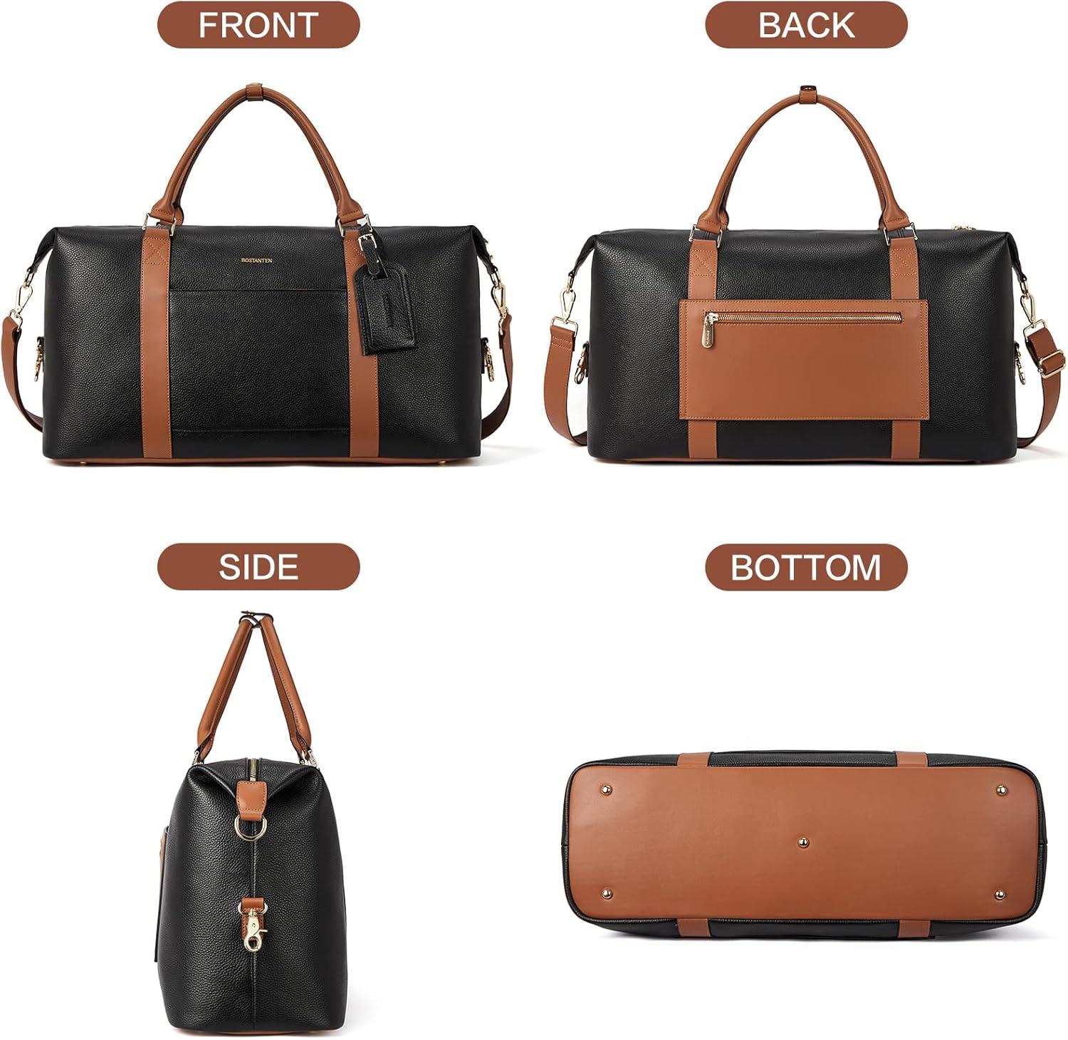 BOSTANTEN Weekender Bags for Women Leather Duffle Bag for Travel Overnight Duffel Carry on Large Tote with Trolley Sleeve and Luggage Tag(Black)