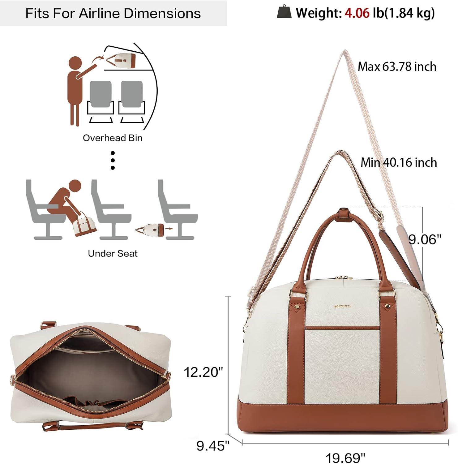 BOSTANTEN Weekender Bags for Women Leather Travel Duffle Bag Carry On Large Tote Duffel with Shoe Compartment and Trolley Sleeve(B-Beige&Brown)