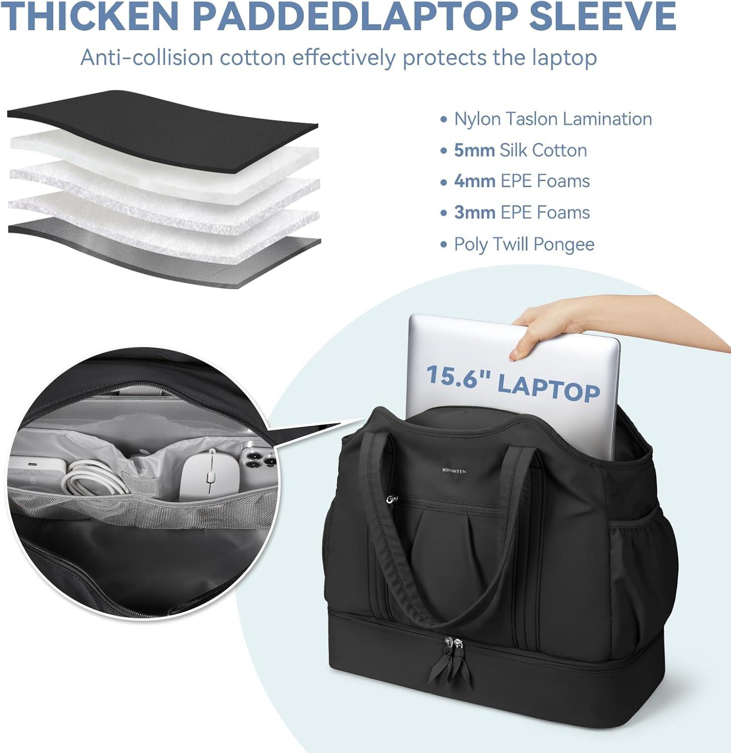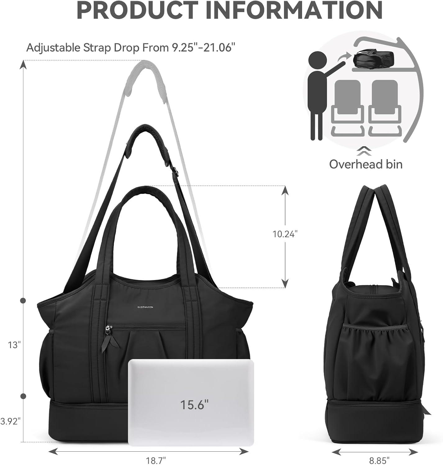 imageBOSTANTEN Weekender Bags for Women Waterproof Gym Bag with Shoe Compartment Ideal Carryon Bag for Sport and Travel BlackABlack
