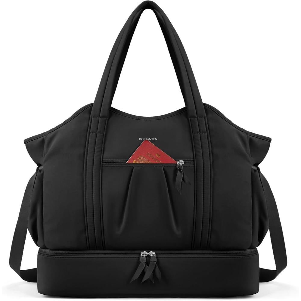 BOSTANTEN Weekender Bags for Women, Waterproof Gym Bag with Shoe Compartment, Ideal Carry-on Bag for Sport and Travel, Black(A-Black)