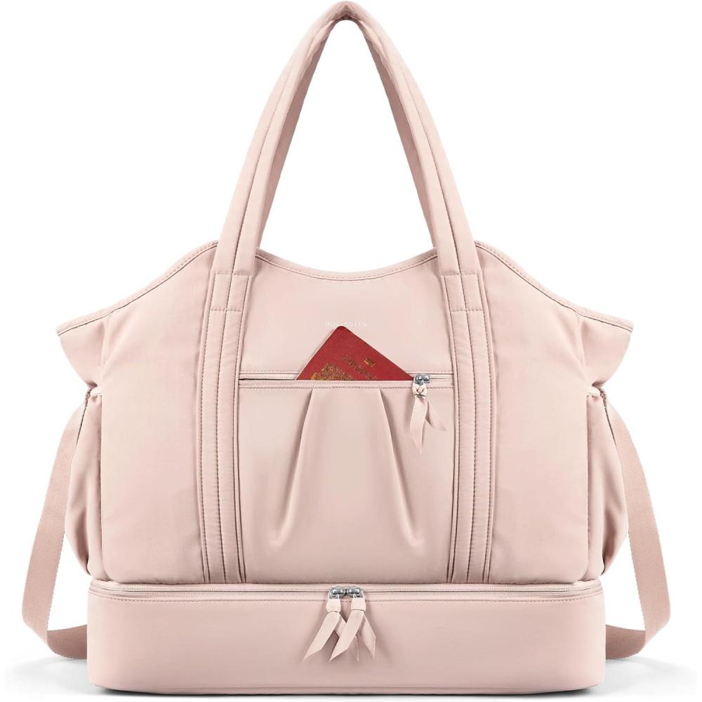 BOSTANTEN Weekender Bags for Women, Waterproof Gym Bag with Shoe Compartment, Ideal Carry-on Bag for Sport and Travel, Black(A-Pink)