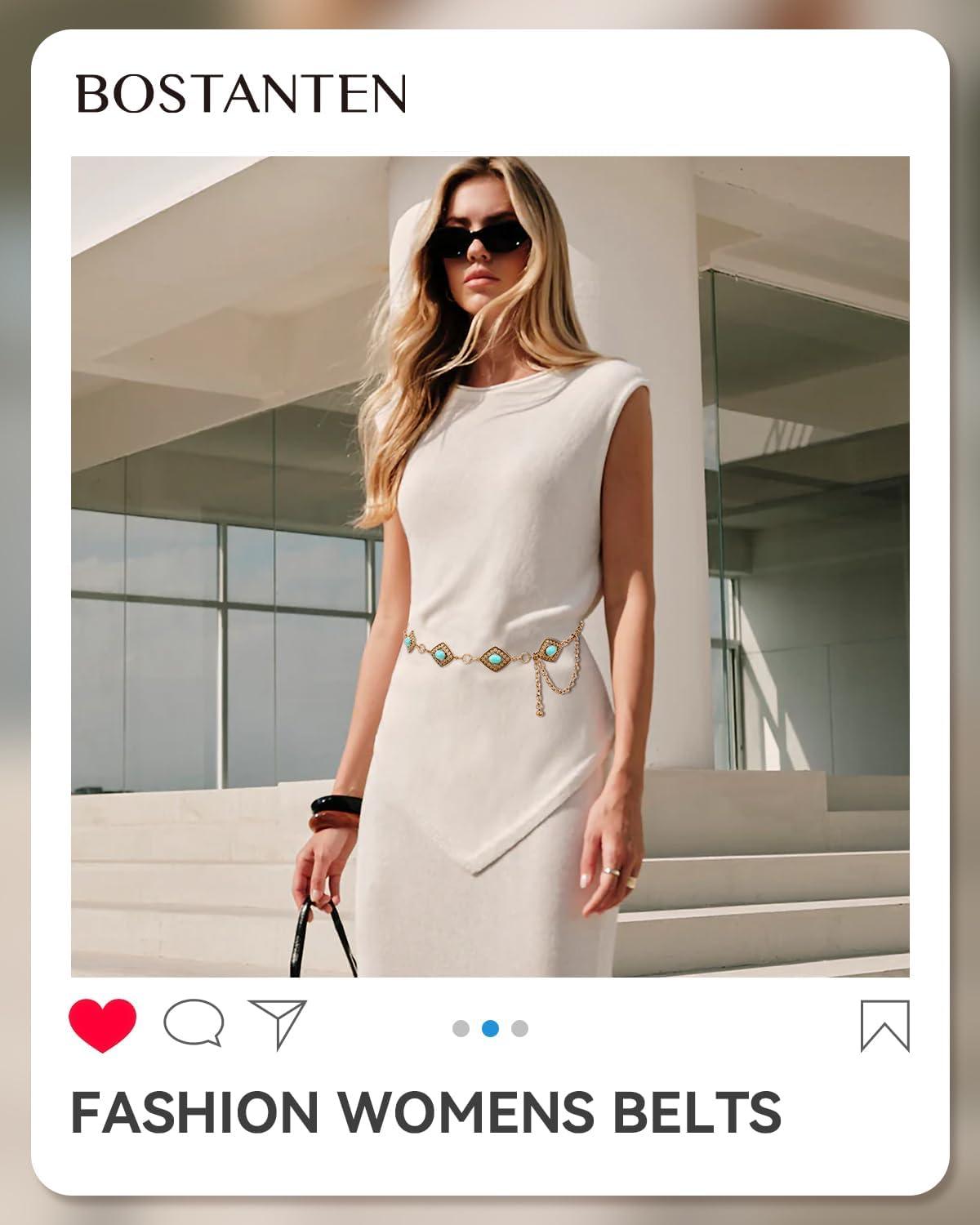 Be the first to review “BOSTANTEN Western Metal Waist Chain Belt for Women Cowgirl Boho Turquoise Belts for Dress Jeans Country Concert Outfit(003-diamond Vintage Goldr)”