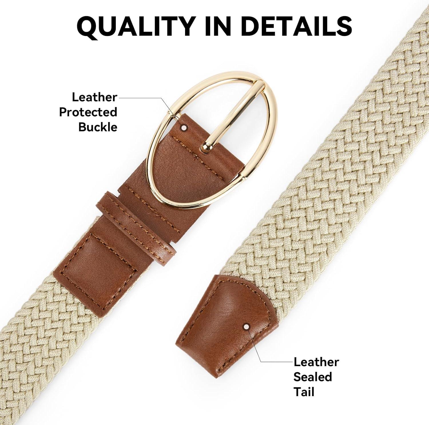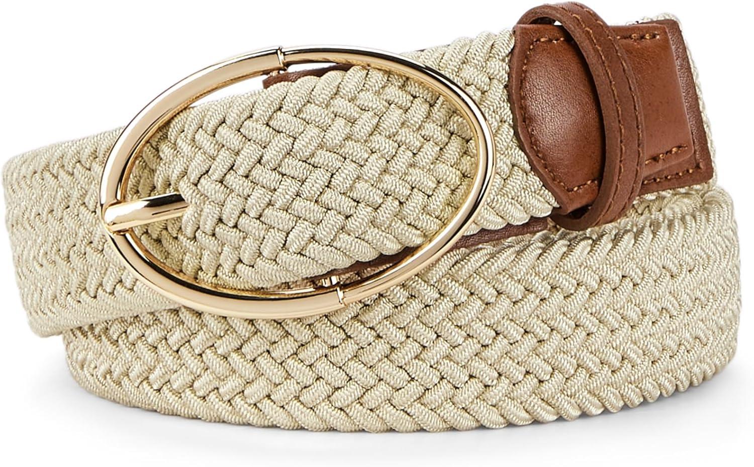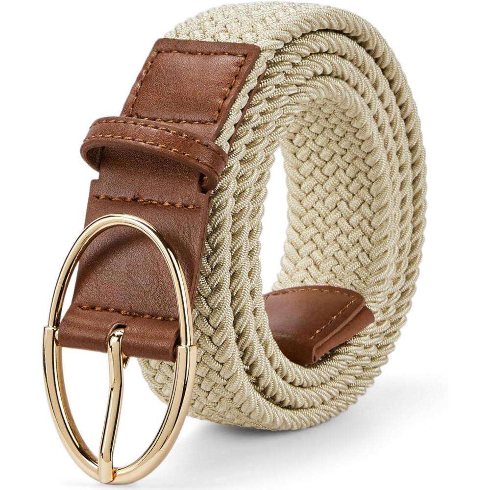 imageBOSTANTEN Women Belts For Jeans Dresses Pants Trendy Ladies Leather Waist Black Belt with Silver Oval Buckle003khakiBraided