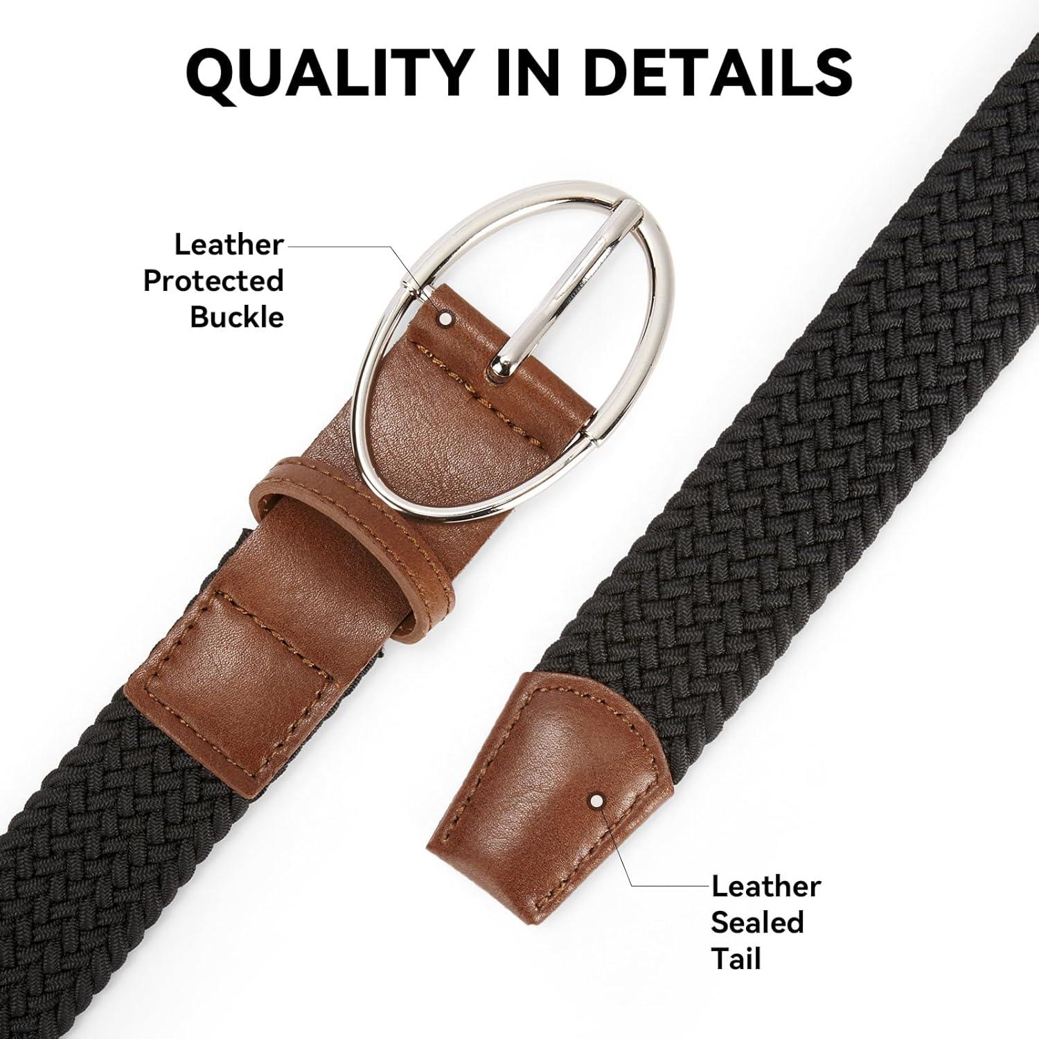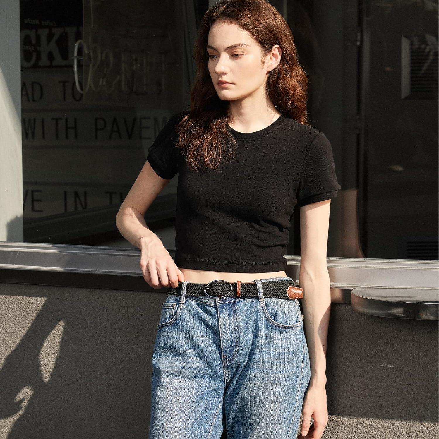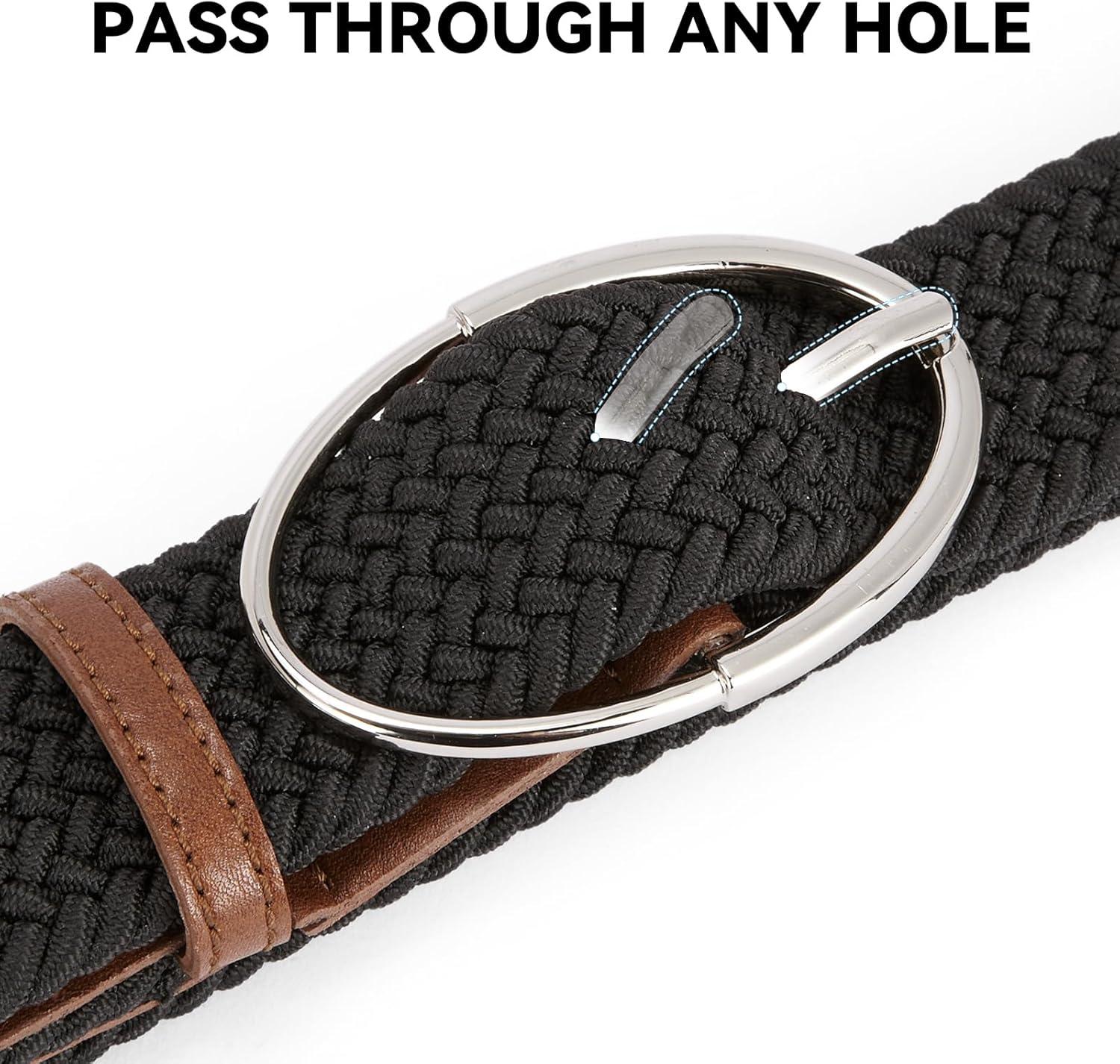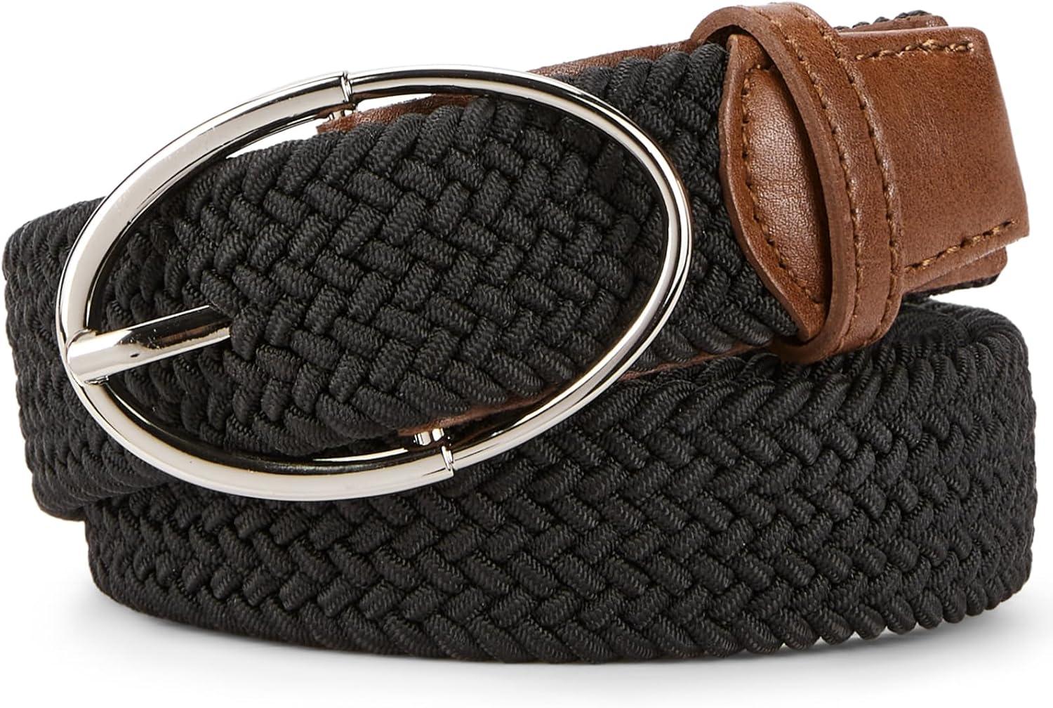 BOSTANTEN Women Belts For Jeans Dresses Pants Trendy Ladies Leather Waist Black Belt with Silver Oval Buckle(005-black/Braided)