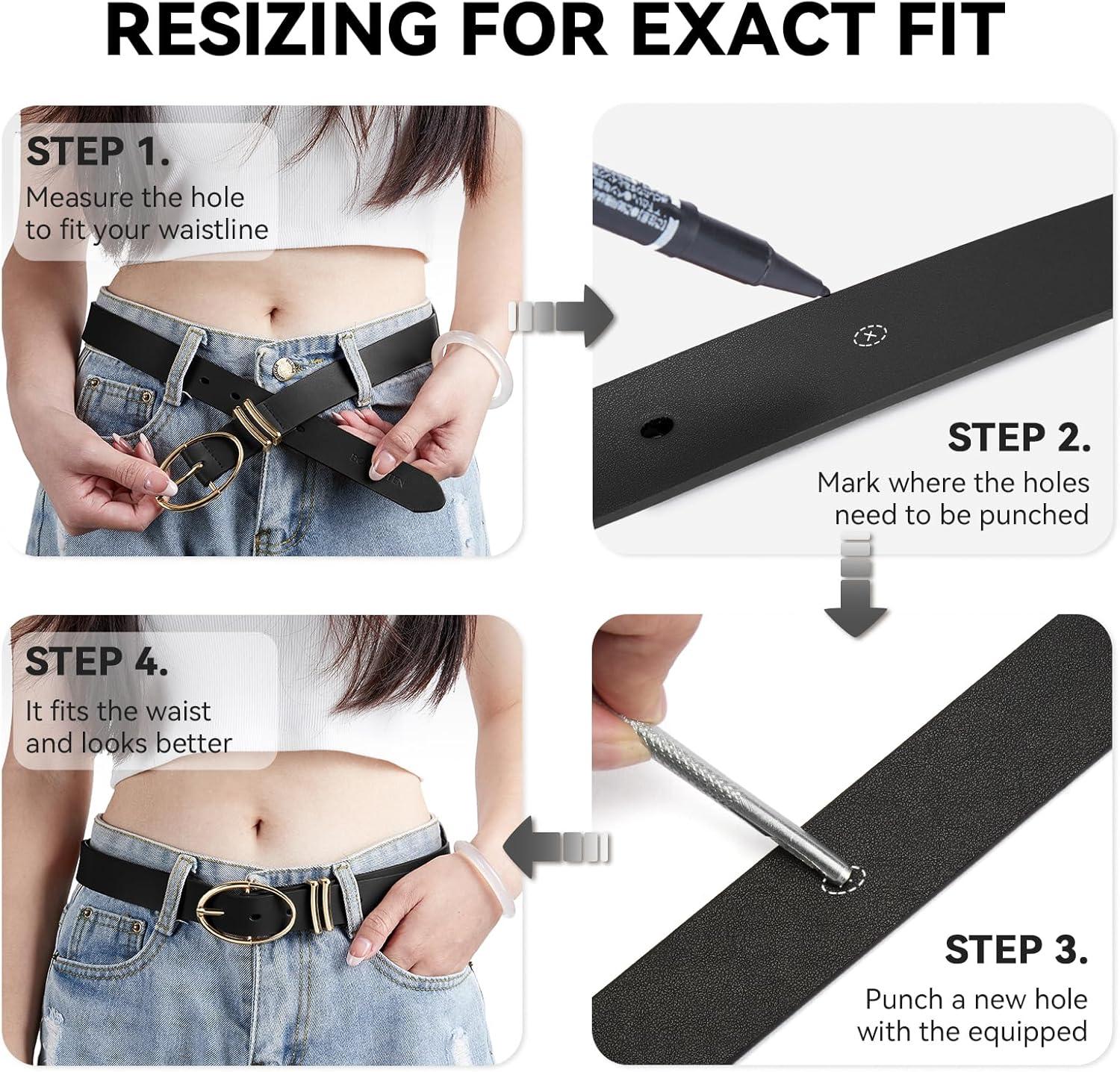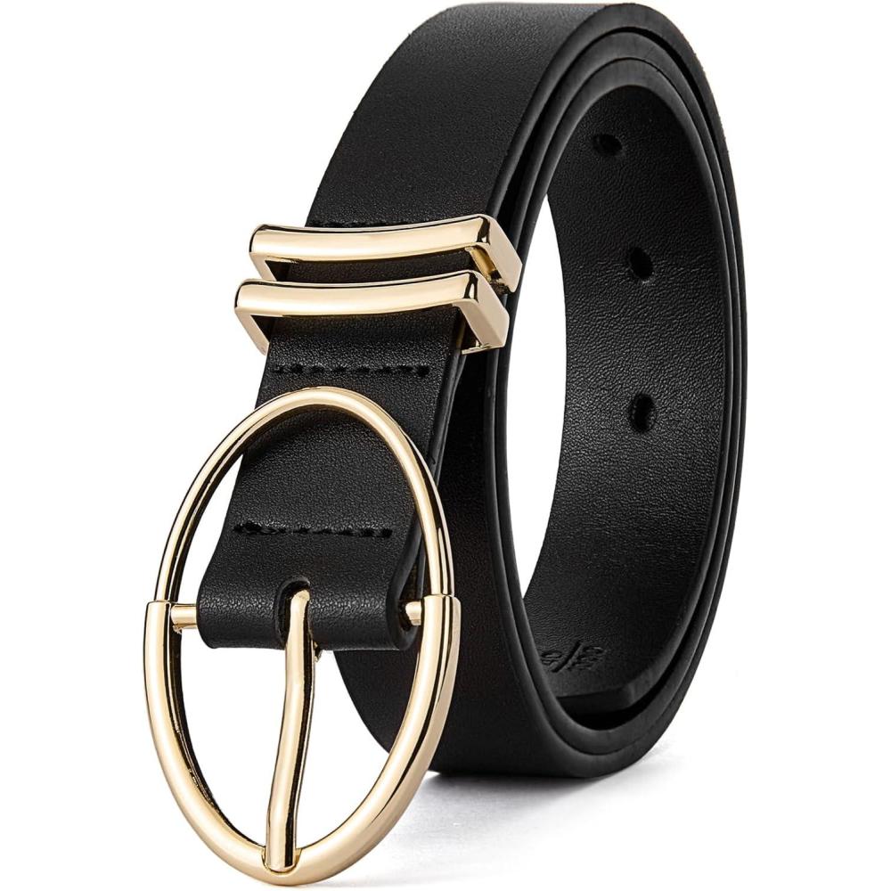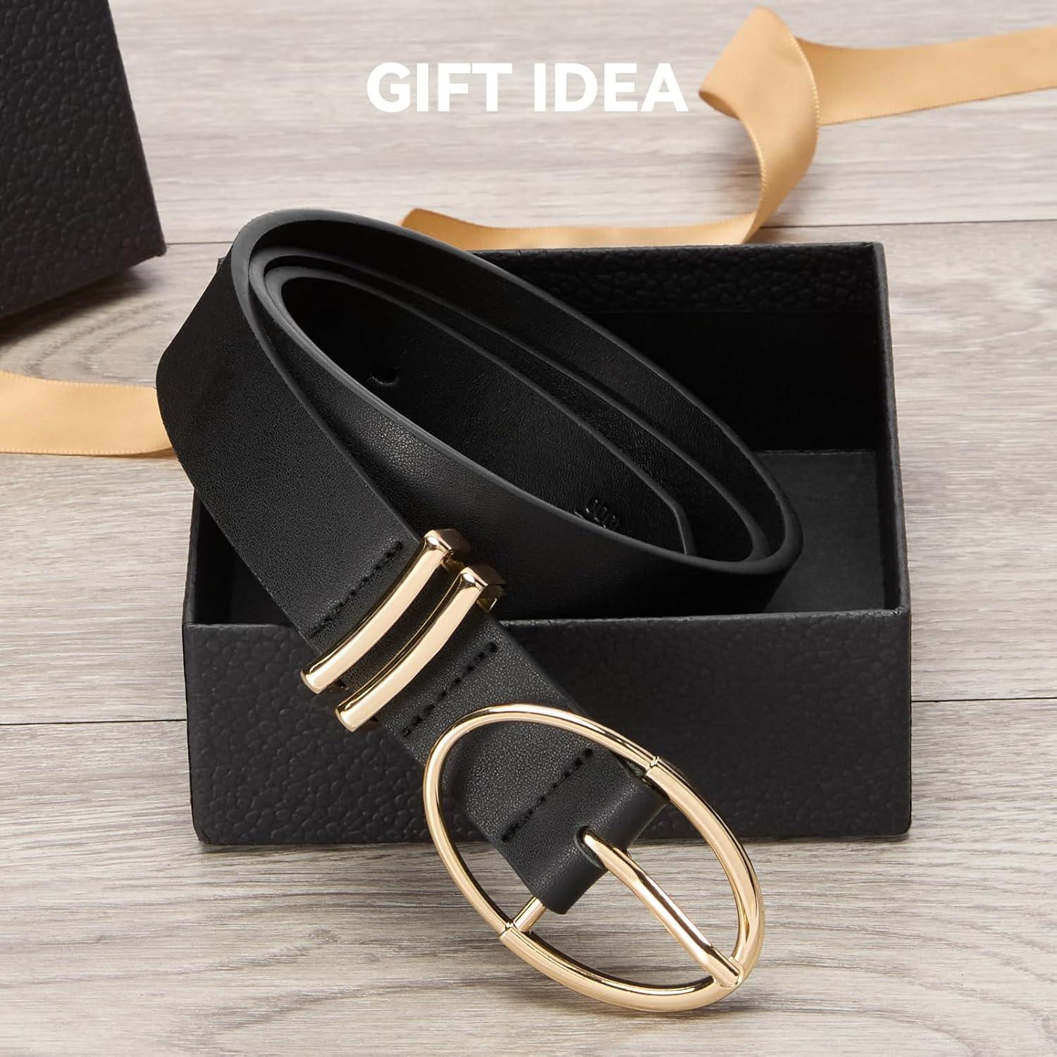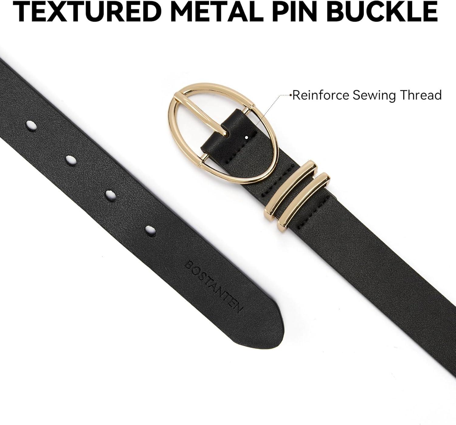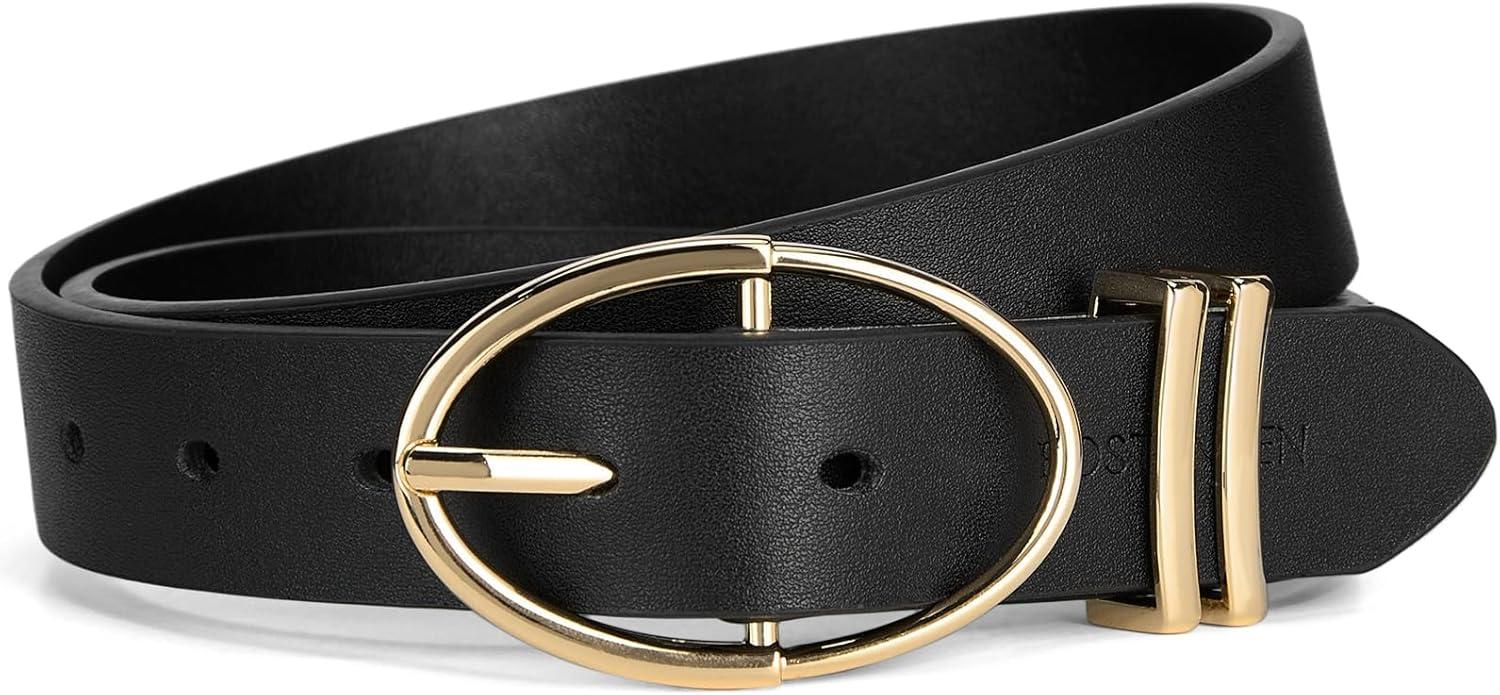 imageBOSTANTEN Women Belts For Jeans Dresses Pants Trendy Ladies Leather Waist Black Belt with Silver Oval Buckle006blackLeather