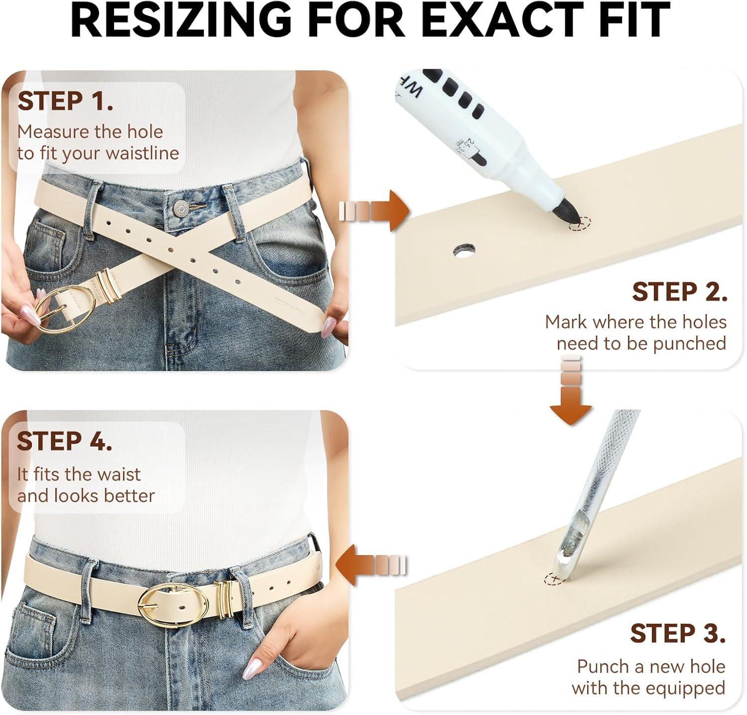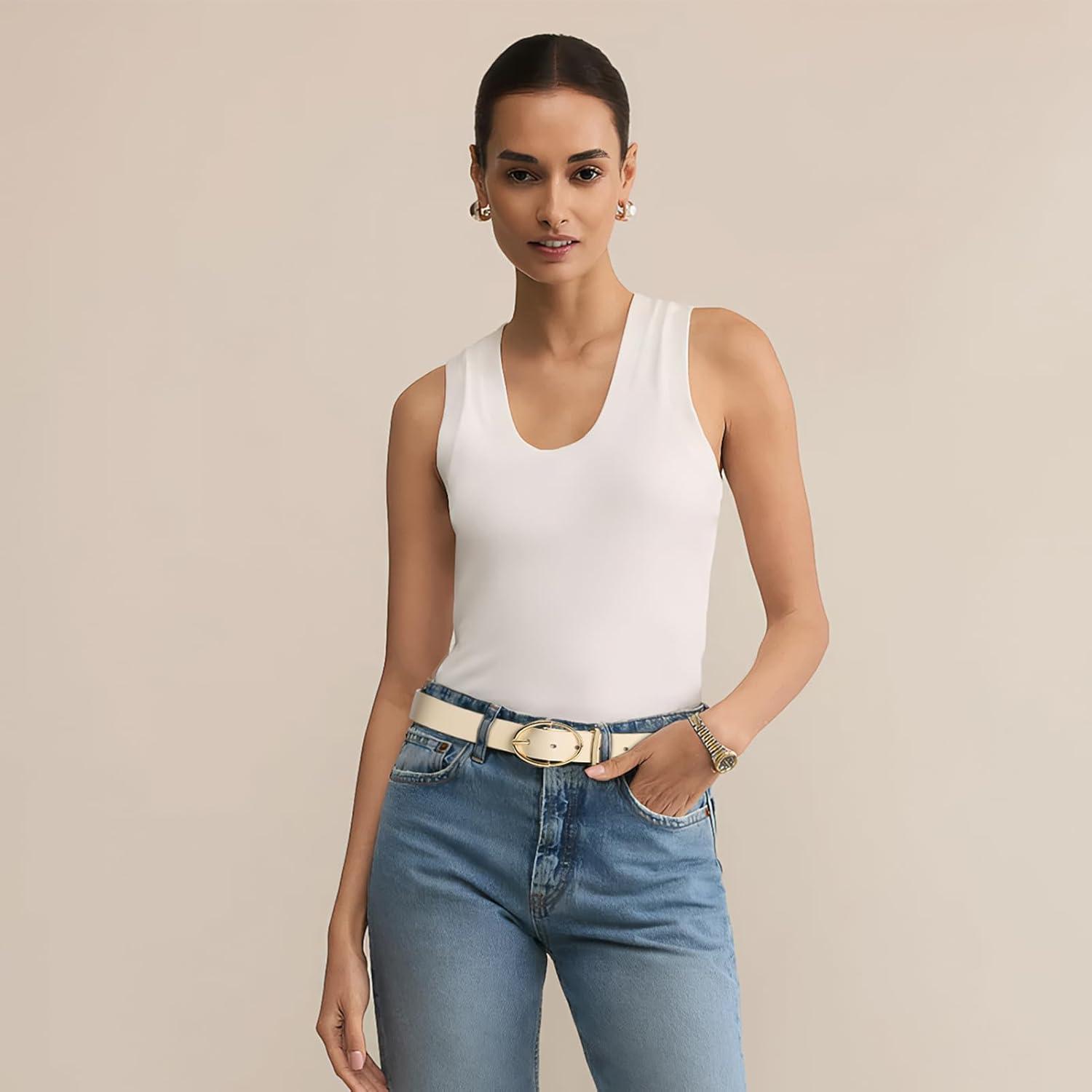 BOSTANTEN Women Belts For Jeans Dresses Pants Trendy Ladies Leather Waist Black Belt with Silver Oval Buckle(008-white/Leather)