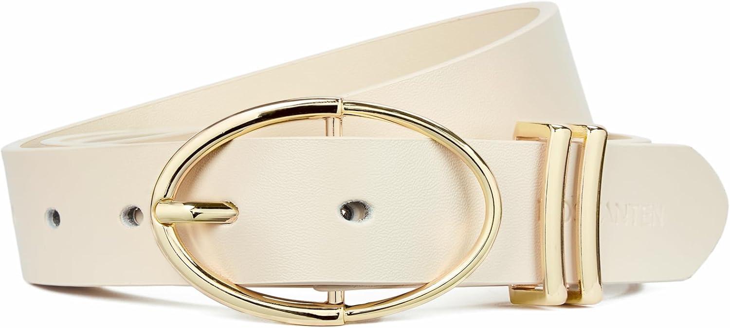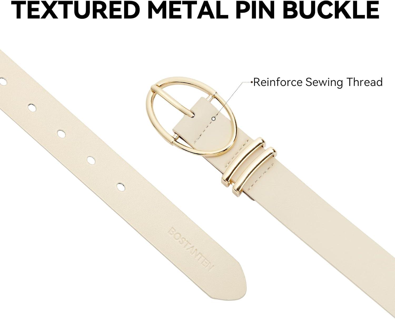 imageBOSTANTEN Women Belts For Jeans Dresses Pants Trendy Ladies Leather Waist Black Belt with Silver Oval Buckle008whiteLeather