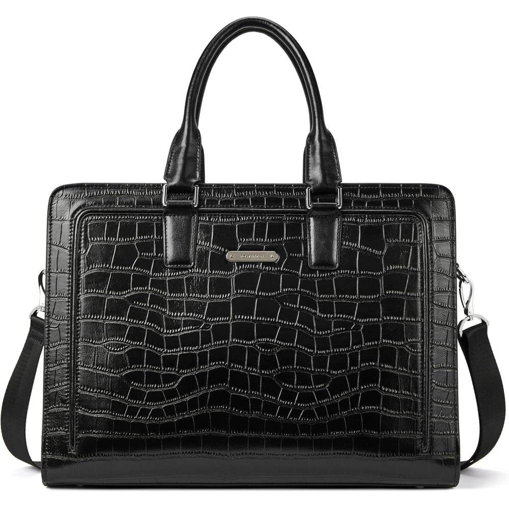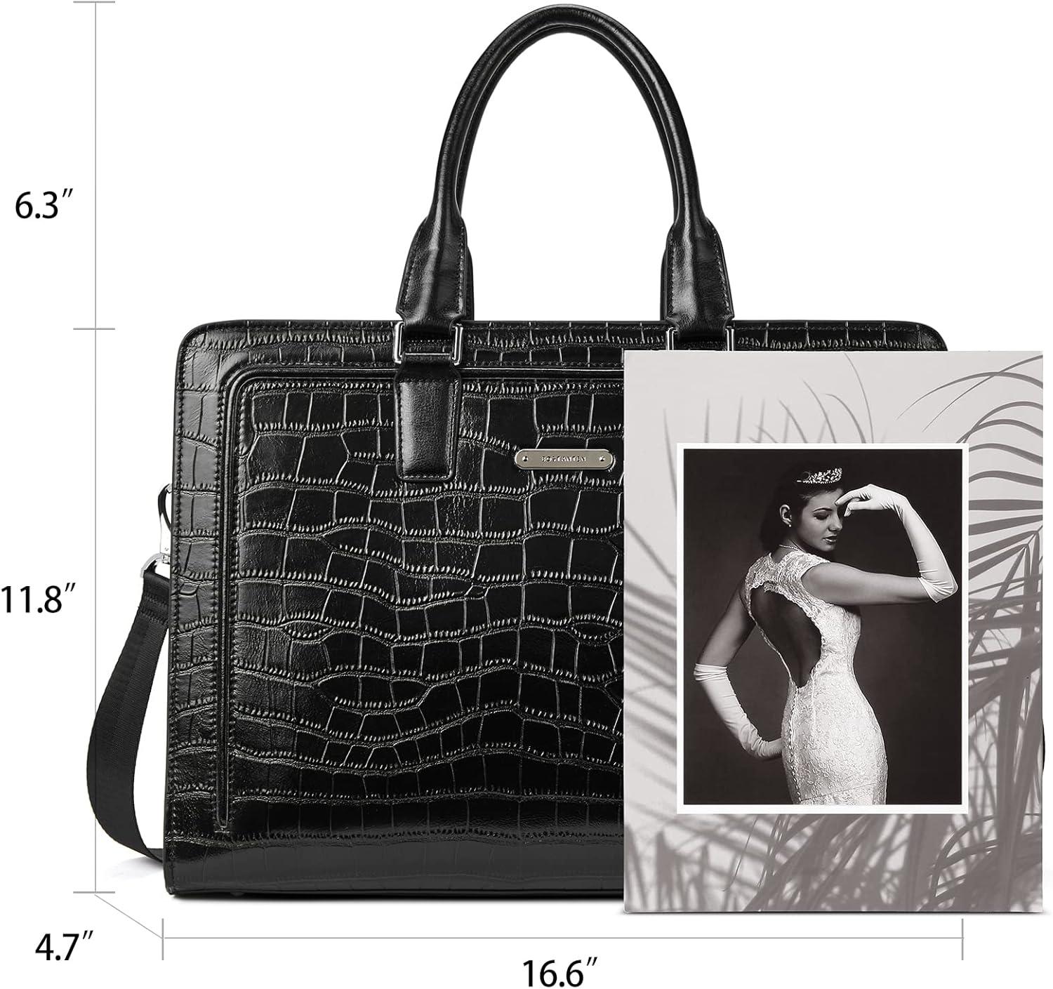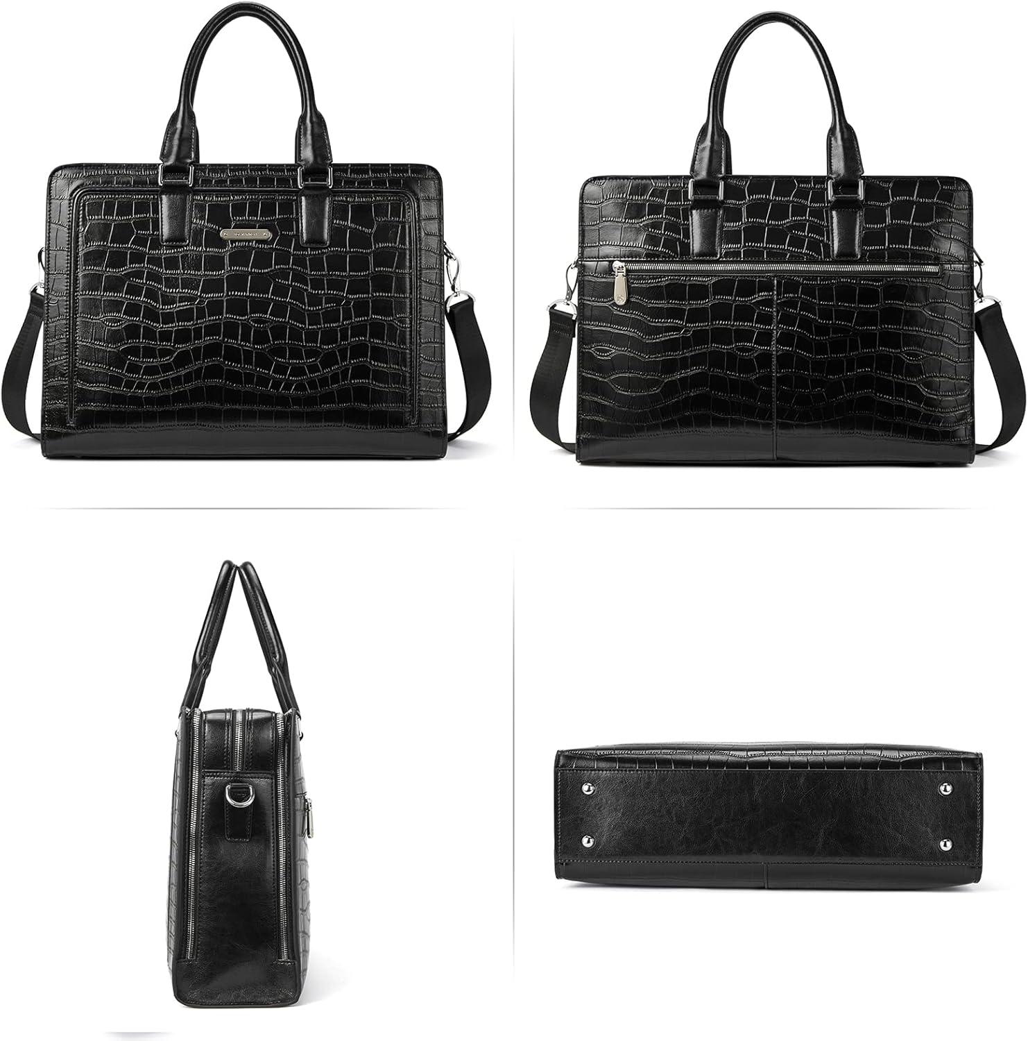 BOSTANTEN Women Genuine Leather Briefcase Tote Business Vintage Handbag 15.6″ Laptop Shoulder Bag Brown(A-crocodile Pattern Black)