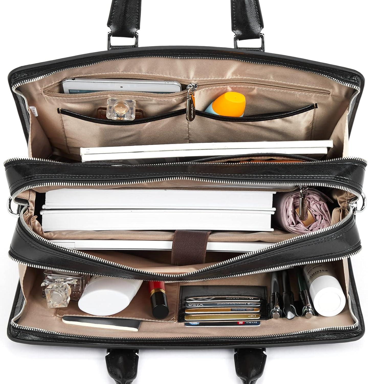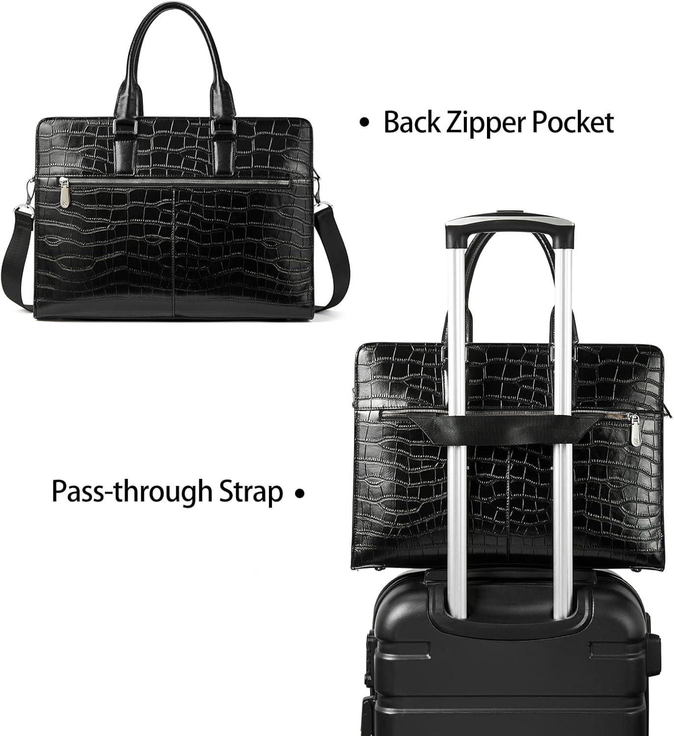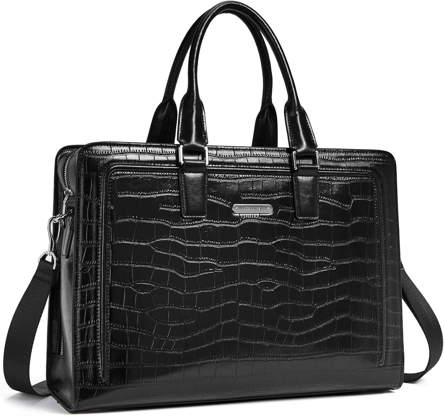 BOSTANTEN Women Genuine Leather Briefcase Tote Business Vintage Handbag 15.6″ Laptop Shoulder Bag Brown(A-crocodile Pattern Black)