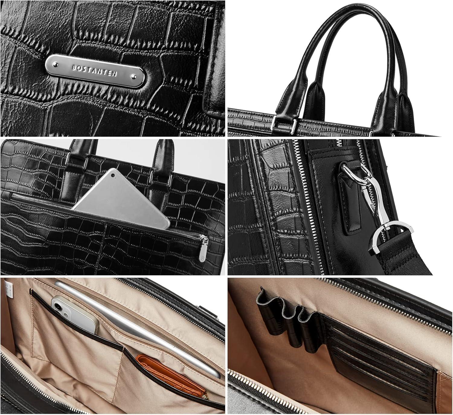BOSTANTEN Women Genuine Leather Briefcase Tote Business Vintage Handbag 15.6" Laptop Shoulder Bag Brown(A-crocodile Pattern Black)