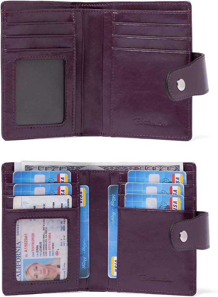 imageBOSTANTEN Women Leather Wallet RFID Blocking Small Bifold Zipper Pocket Wallet Card Case Purse with ID Window1purple