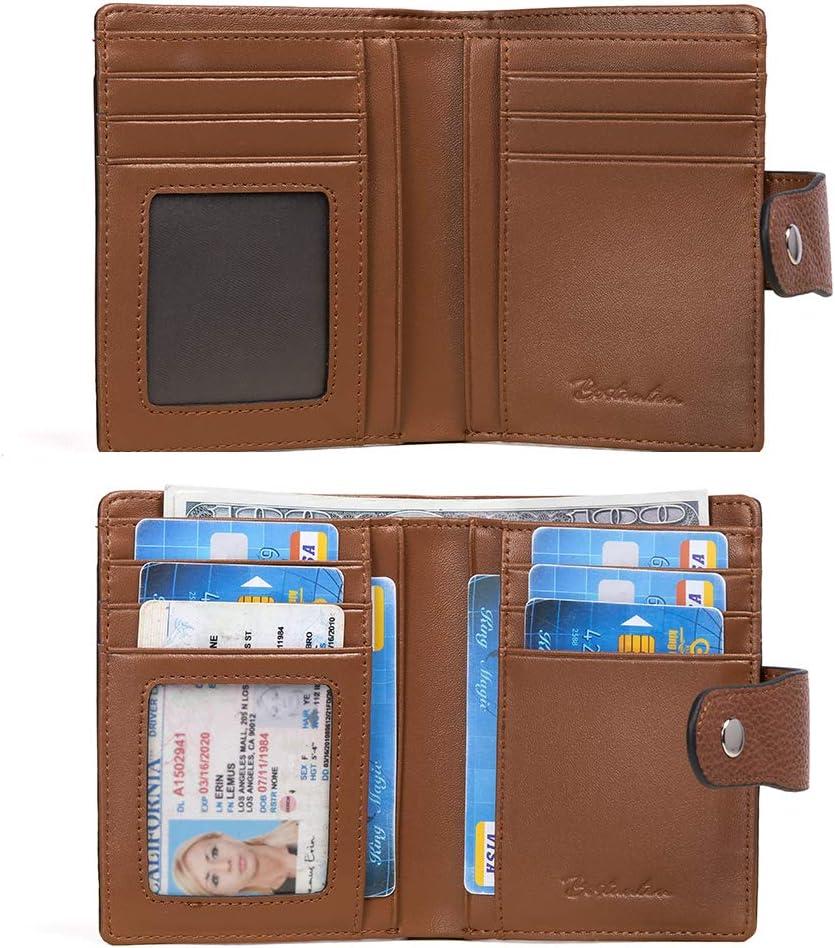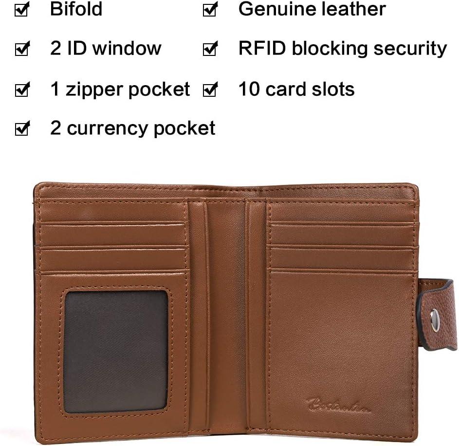 imageBOSTANTEN Women Leather Wallet RFID Blocking Small Bifold Zipper Pocket Wallet Card Case Purse with ID Window2brown pebble