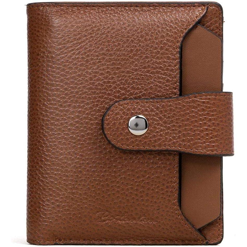 BOSTANTEN Women Leather Wallet RFID Blocking Small Bifold Zipper Pocket Wallet Card Case Purse with ID Window(2-brown pebble)