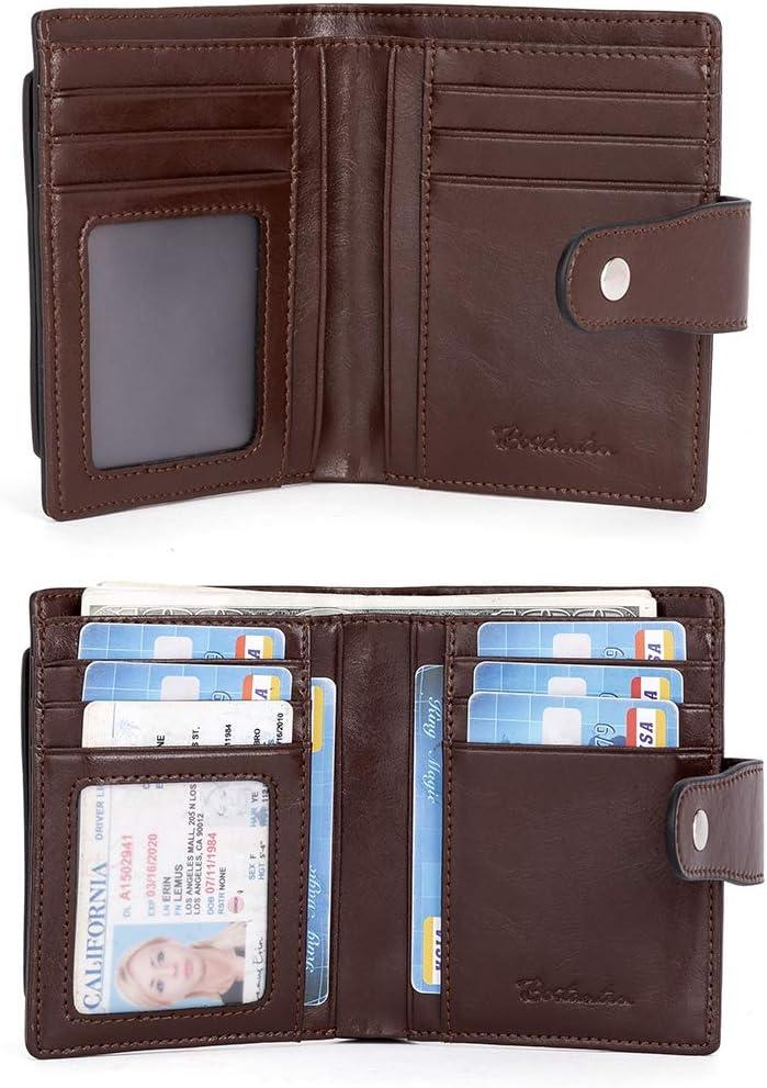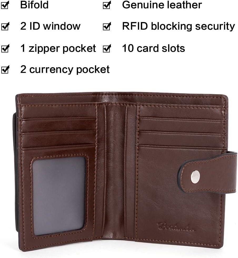 imageBOSTANTEN Women Leather Wallet RFID Blocking Small Bifold Zipper Pocket Wallet Card Case Purse with ID Window3coffee