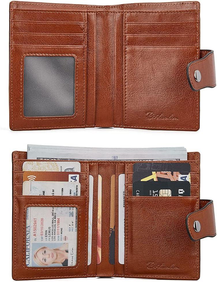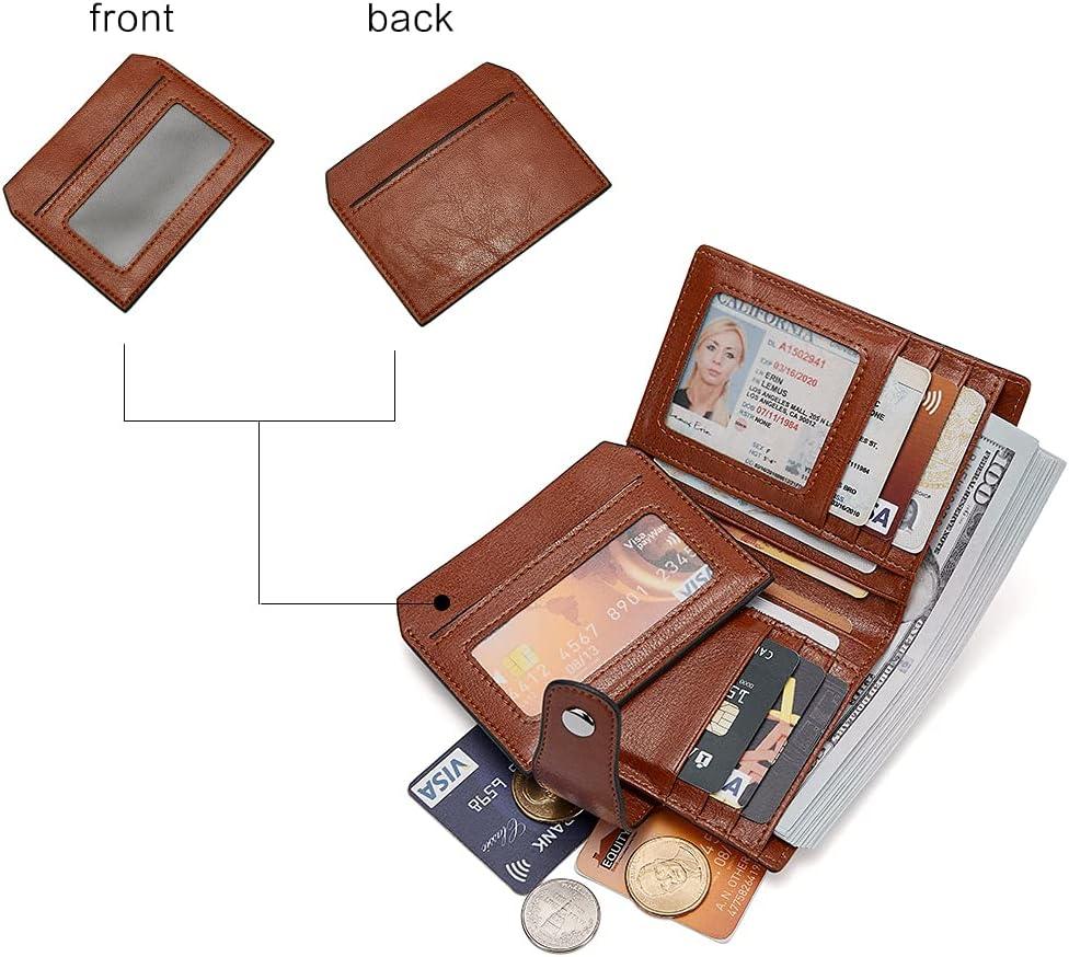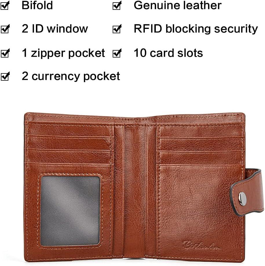 imageBOSTANTEN Women Leather Wallet RFID Blocking Small Bifold Zipper Pocket Wallet Card Case Purse with ID Window6BrownRG