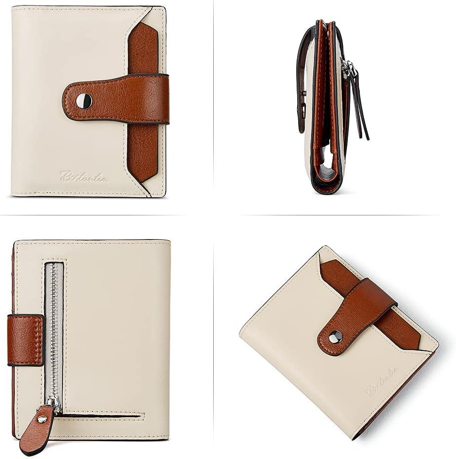 imageBOSTANTEN Women Leather Wallet RFID Blocking Small Bifold Zipper Pocket Wallet Card Case Purse with ID WindowBlackBeige