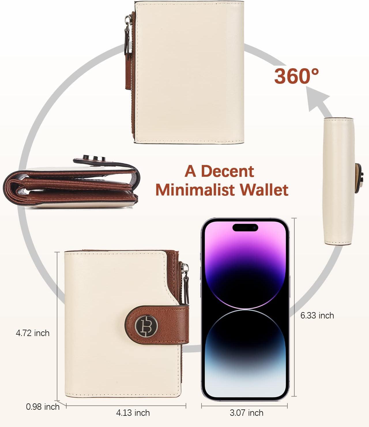 Compact But Roomy: 4.72″ x 4.13″ x 0.98″. Our womens wallet will hold all your cards, cash, etc. and doesn't take up too much space in your small handbag