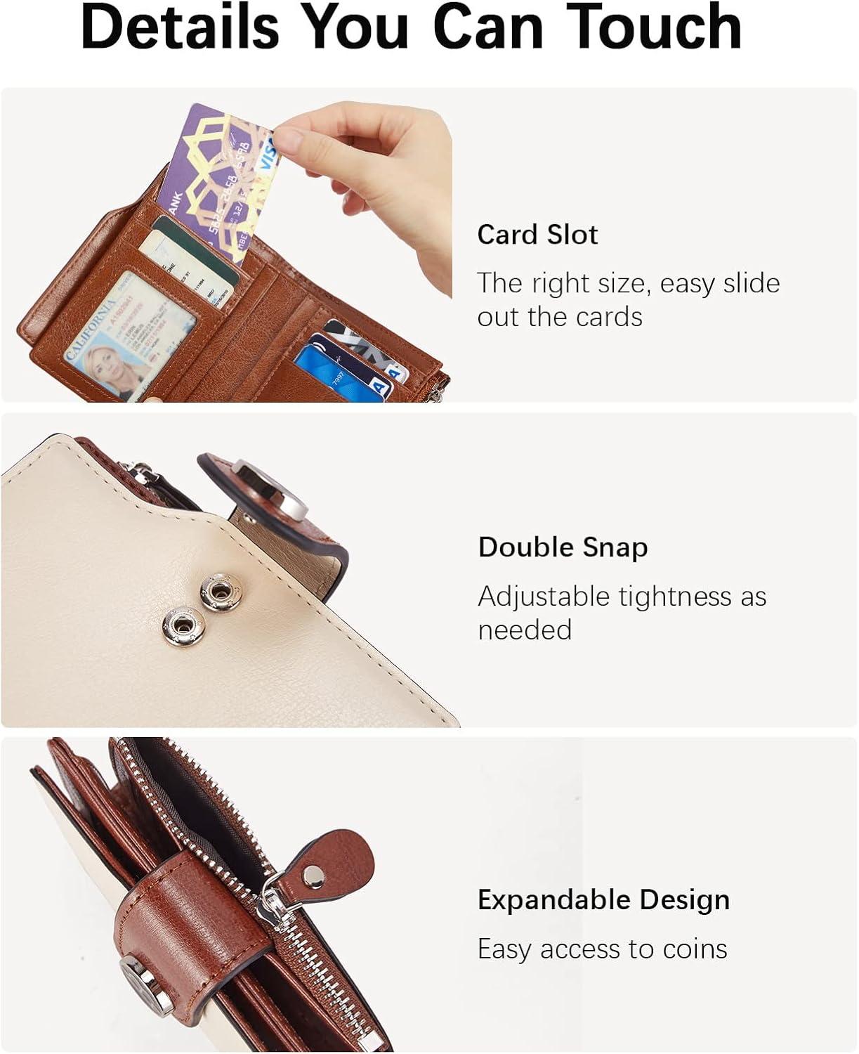 imageBOSTANTEN Women Leather Wallet Small RFID Blocking Bifold Zipper Pocket Wallet Card Case with ID Window BlackBeige1Black