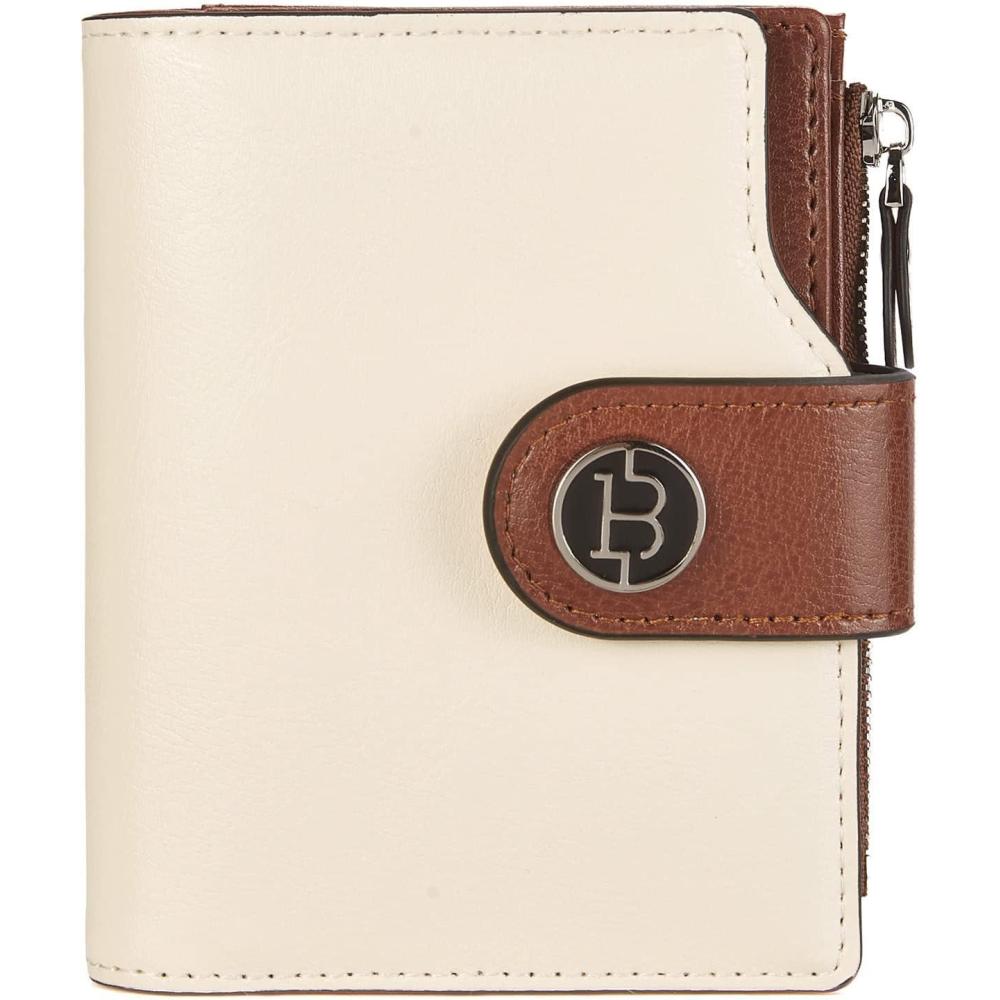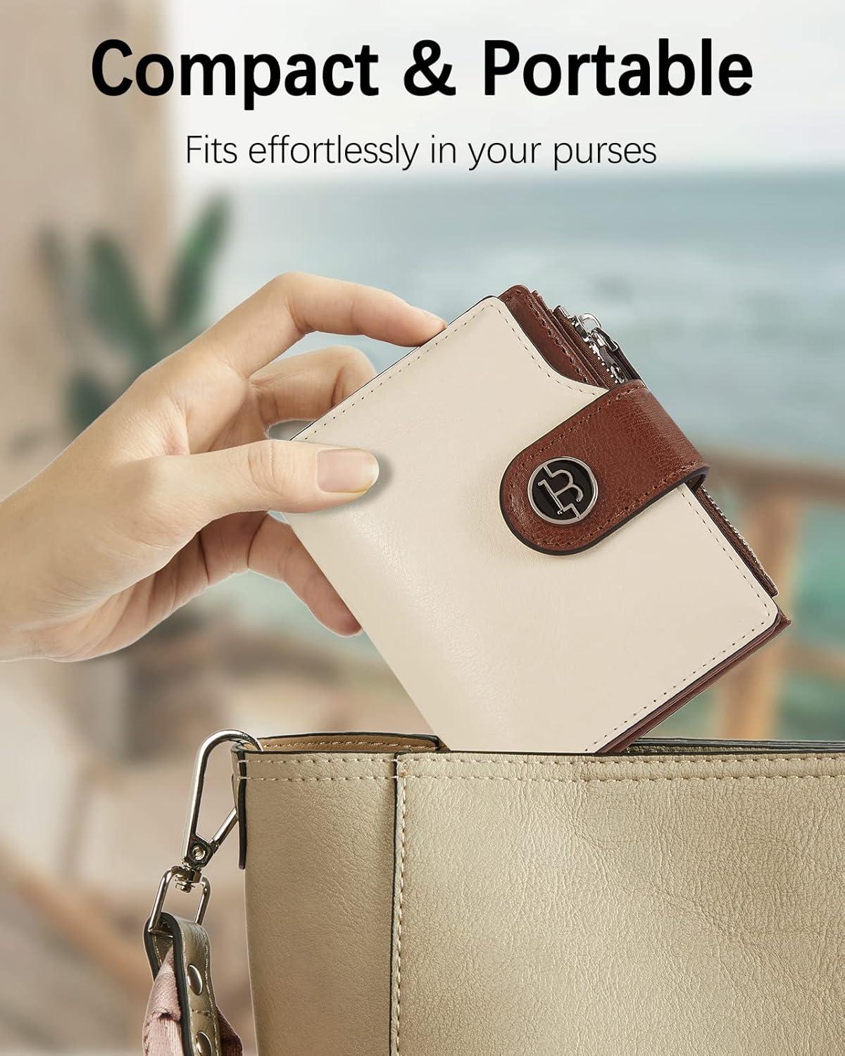 BOSTANTEN Women Leather Wallet Small RFID Blocking Bifold Zipper Pocket Wallet Card Case with ID Window Black&Beige(1-Beige)