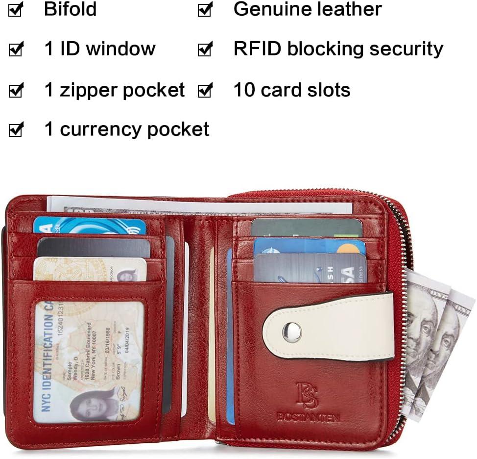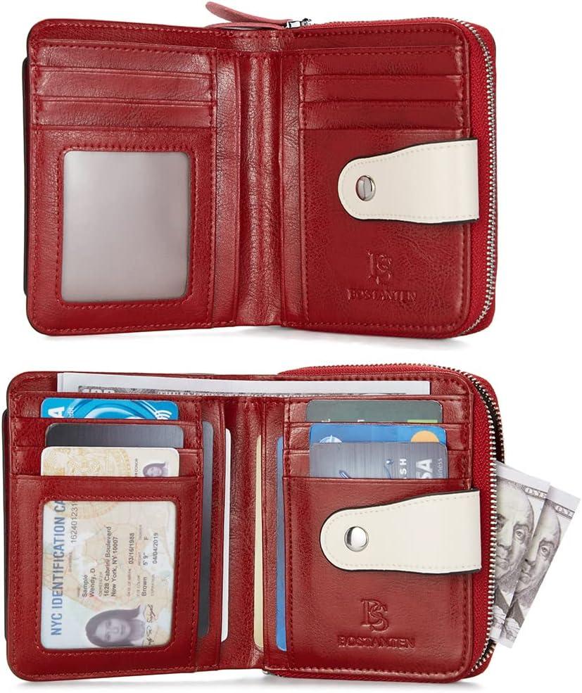 imageBOSTANTEN Women Leather Wallet Small RFID Blocking Bifold Zipper Pocket Wallet Card Case with ID Window BlackBeige3floral Red