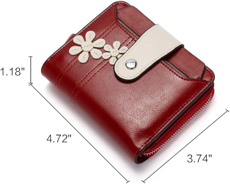 Compact But Roomy: 4.72″ x 4.13″ x 0.98″. Our womens wallet will hold all your cards, cash, etc. and doesn't take up too much space in your small handbag