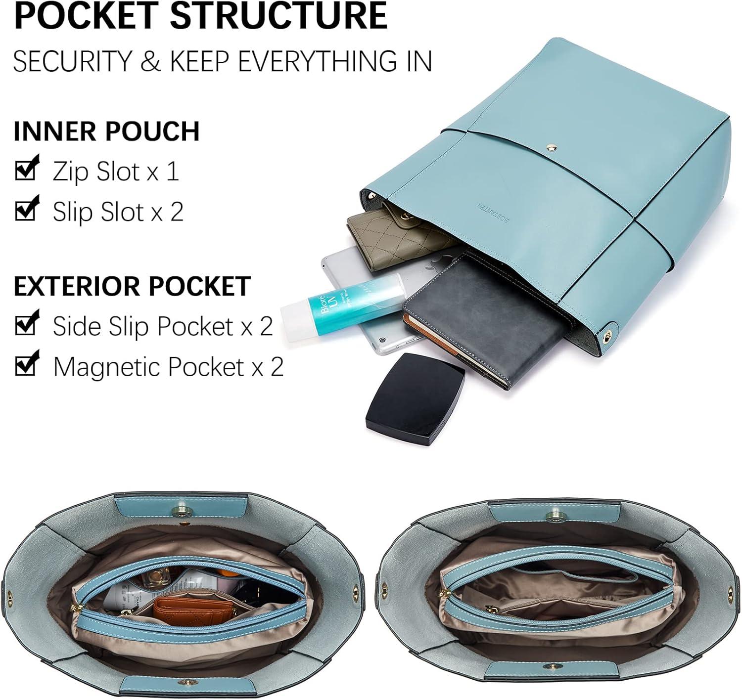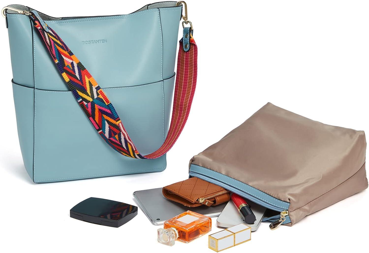imageBOSTANTEN Womens Leather Designer Handbags Tote Purses Shoulder Bucket BagsA02blue
