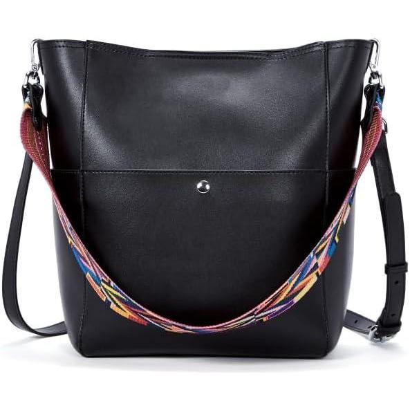 imageBOSTANTEN Womens Leather Designer Handbags Tote Purses Shoulder Bucket BagsMedium Black
