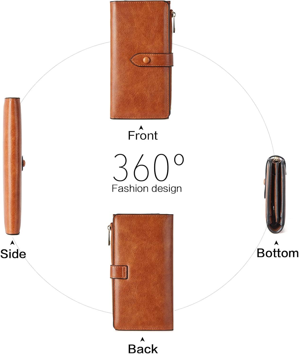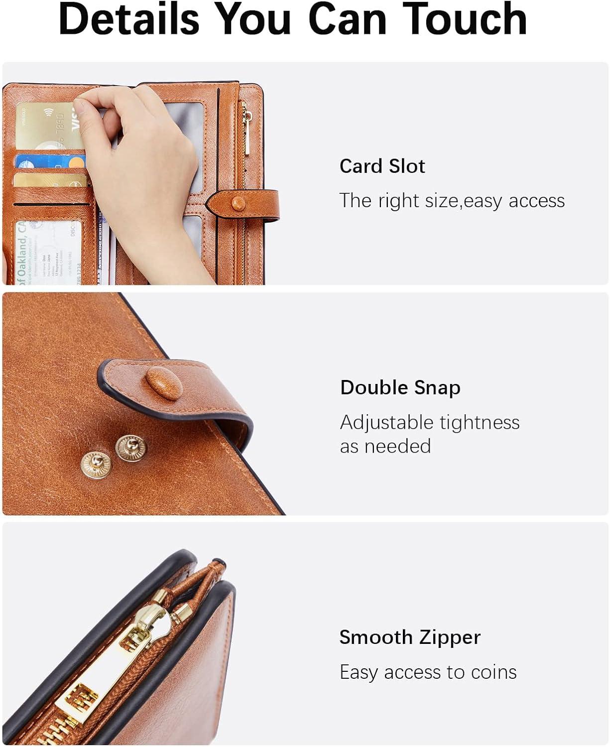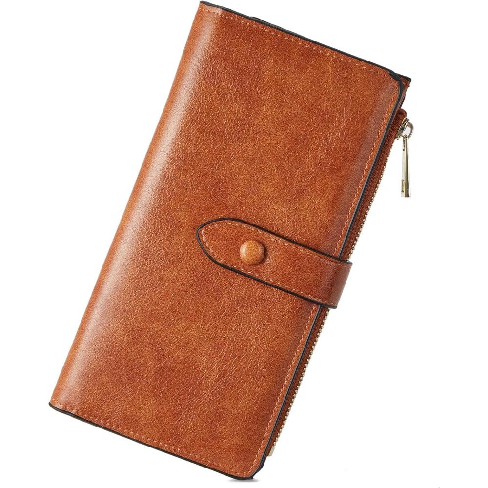 imageBOSTANTEN Womens Leather Wallets RFID Blocking Large Capacity Trifold Card Holder Ladies Phone Clutch BrownABrownoil wax