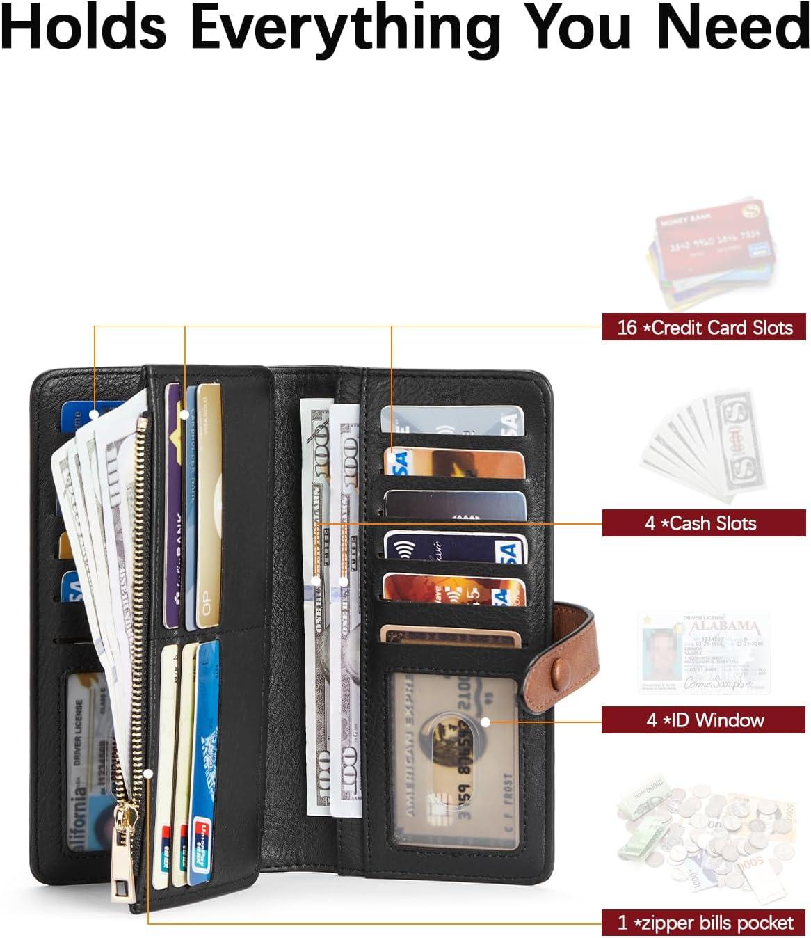 BOSTANTEN Womens Leather Wallets RFID Blocking Large Capacity Trifold Card Holder Ladies Phone Clutch Brown(B-Black-oil wax)