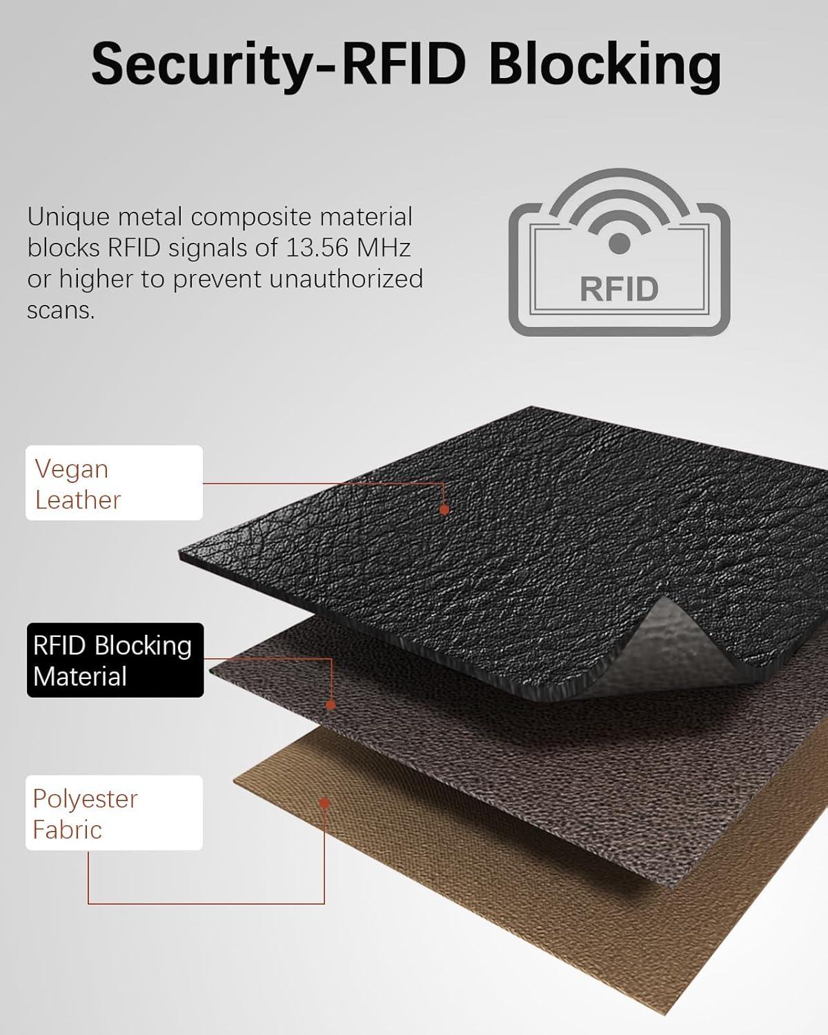 Rfid Blocking Wallet: Our wallets are equipped with advanced RFID SECURE Technology, a unique metal composite, engineered specifically to block 13.56 MHz or higher RFID signals and protect the valuable information stored on RFID chips from unauthorized scans.