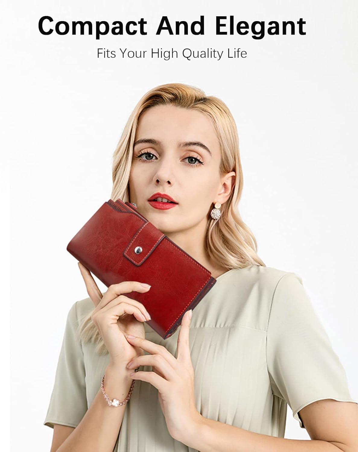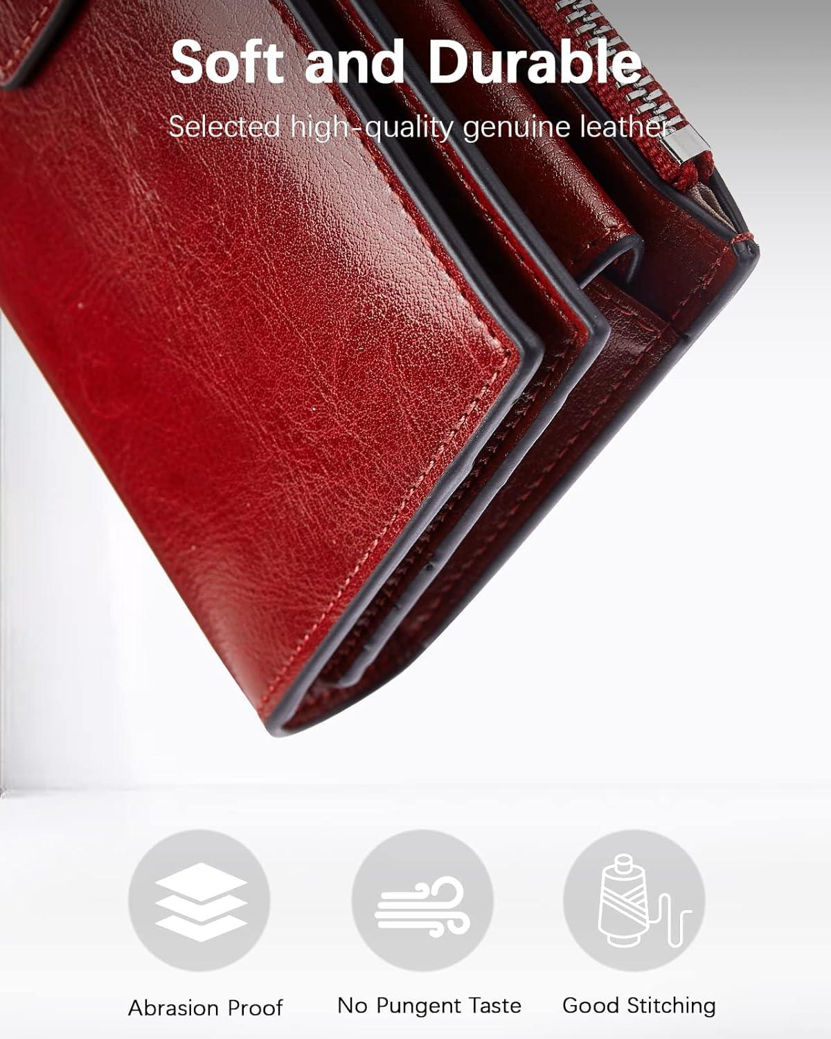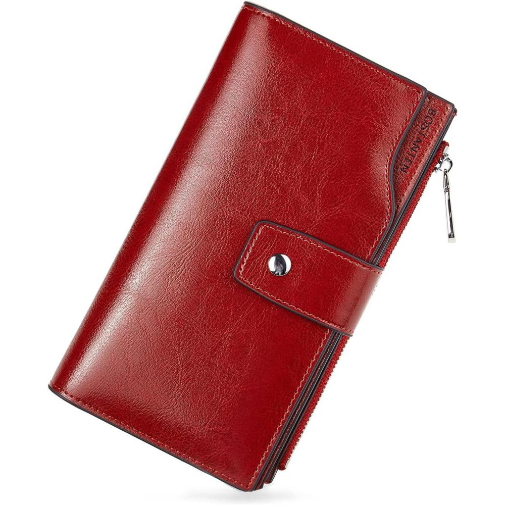 imageBOSTANTEN Womens Leather Wallets RFID Blocking Large Capacity Trifold Card Holder Ladies Phone Clutch BrownCRose Red