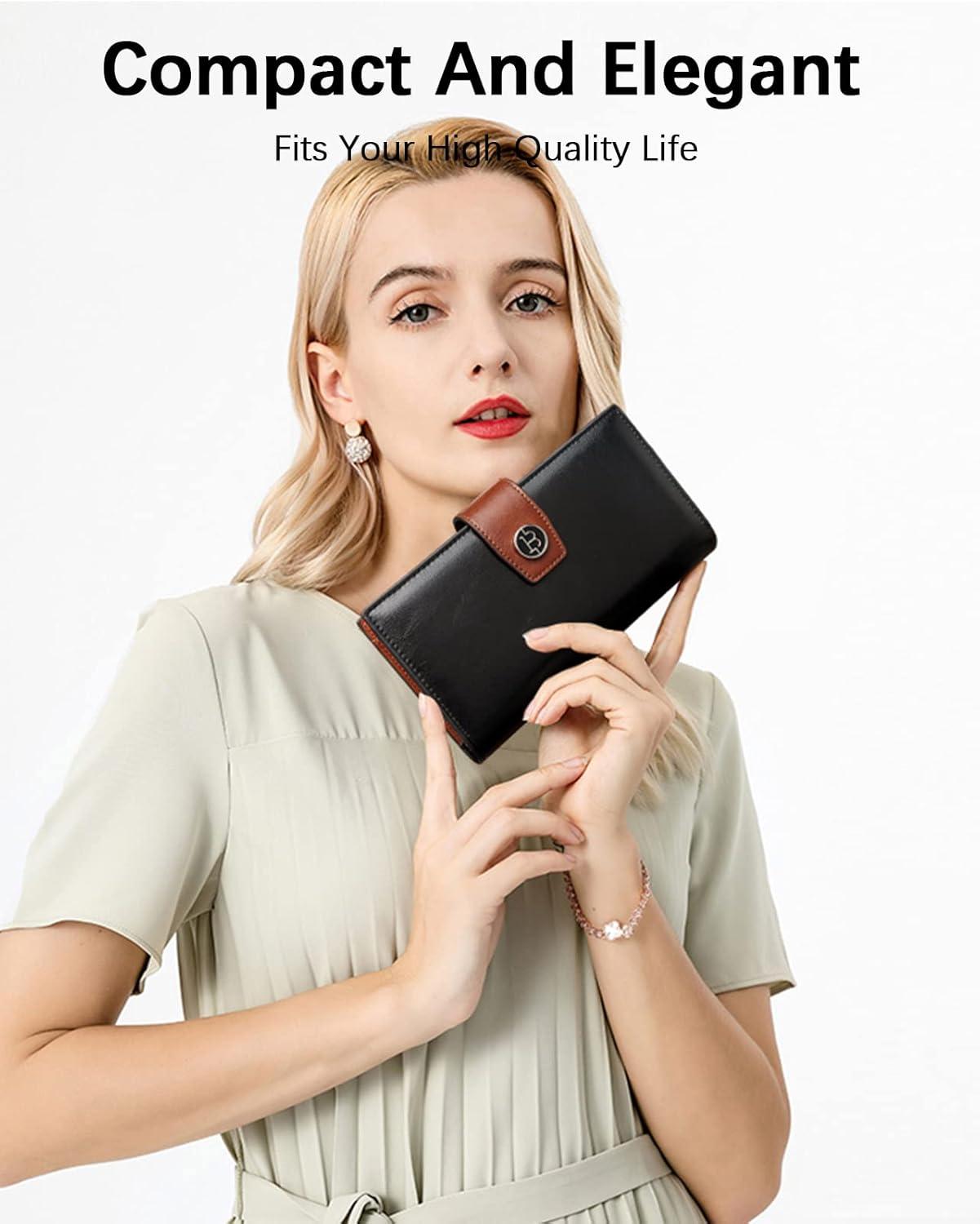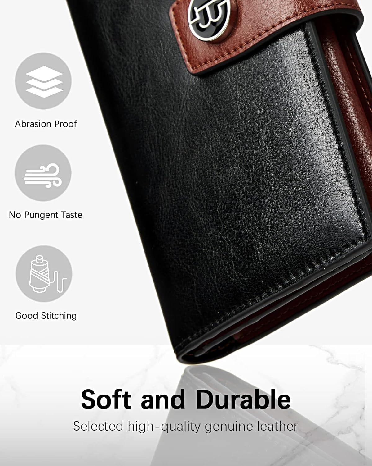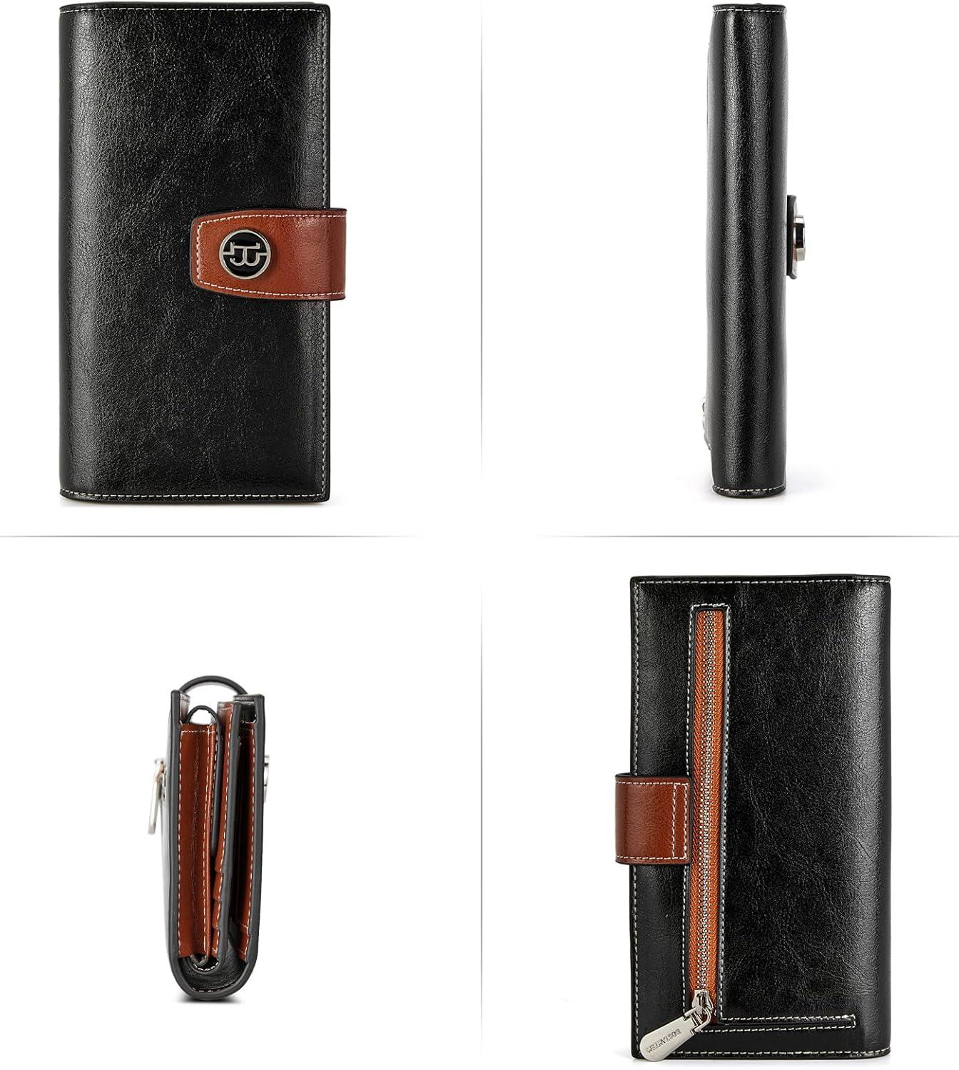 BOSTANTEN Womens Leather Wallets RFID Blocking Large Capacity Trifold Card Holder Ladies Phone Clutch Brown(D-Black&Brown)