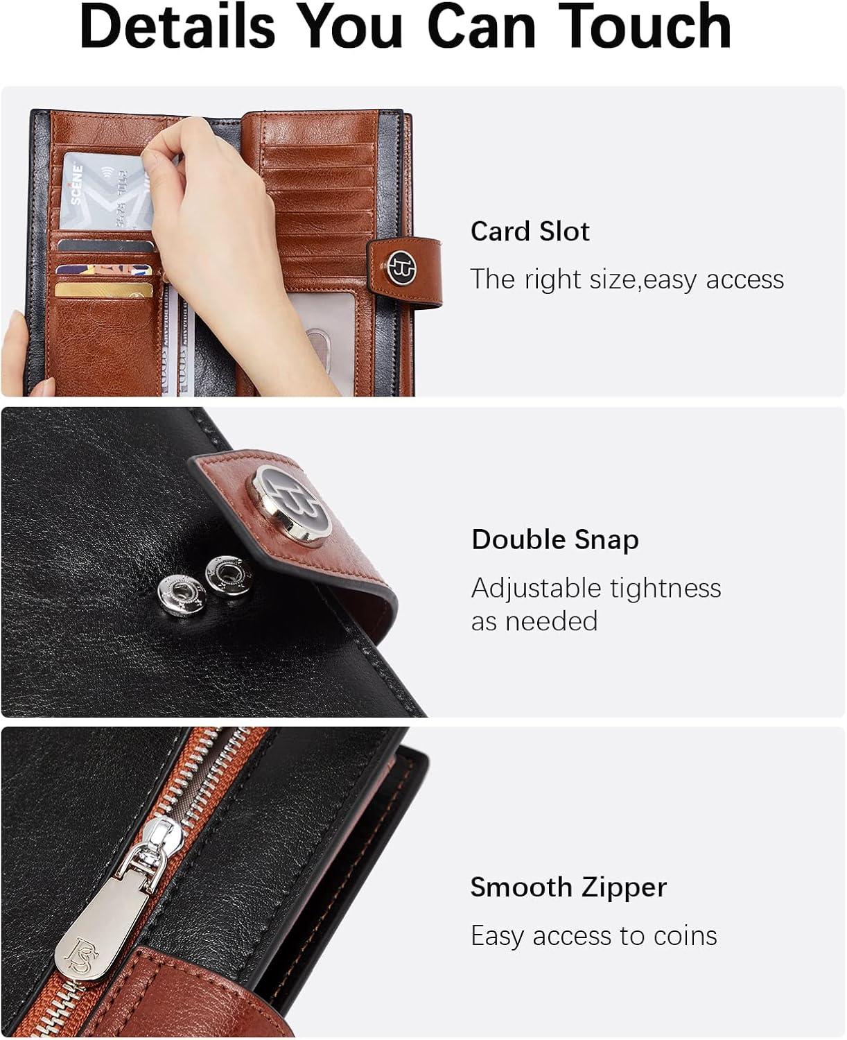 imageBOSTANTEN Womens Leather Wallets RFID Blocking Large Capacity Trifold Card Holder Ladies Phone Clutch BrownDBlackBrown
