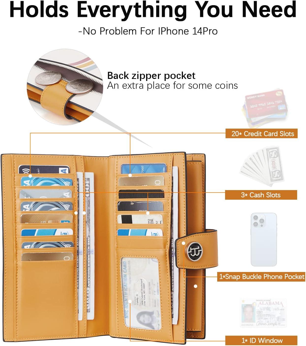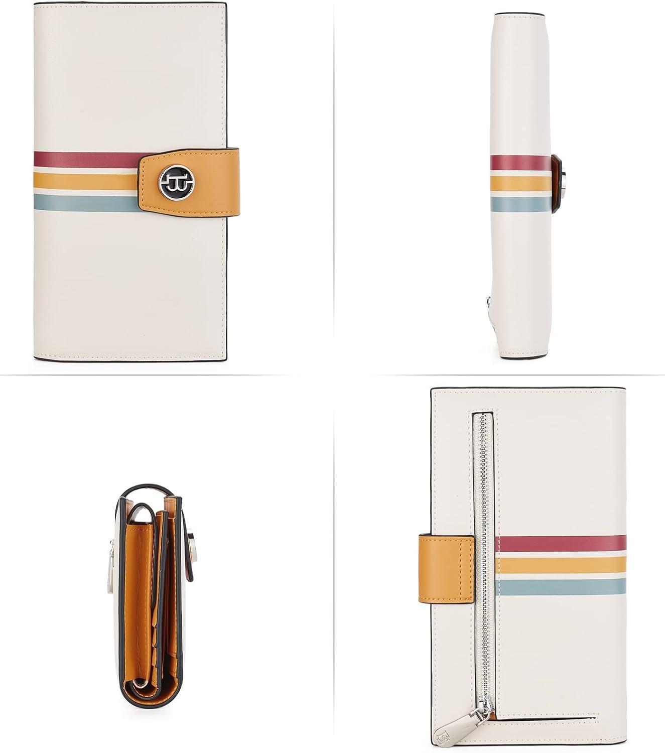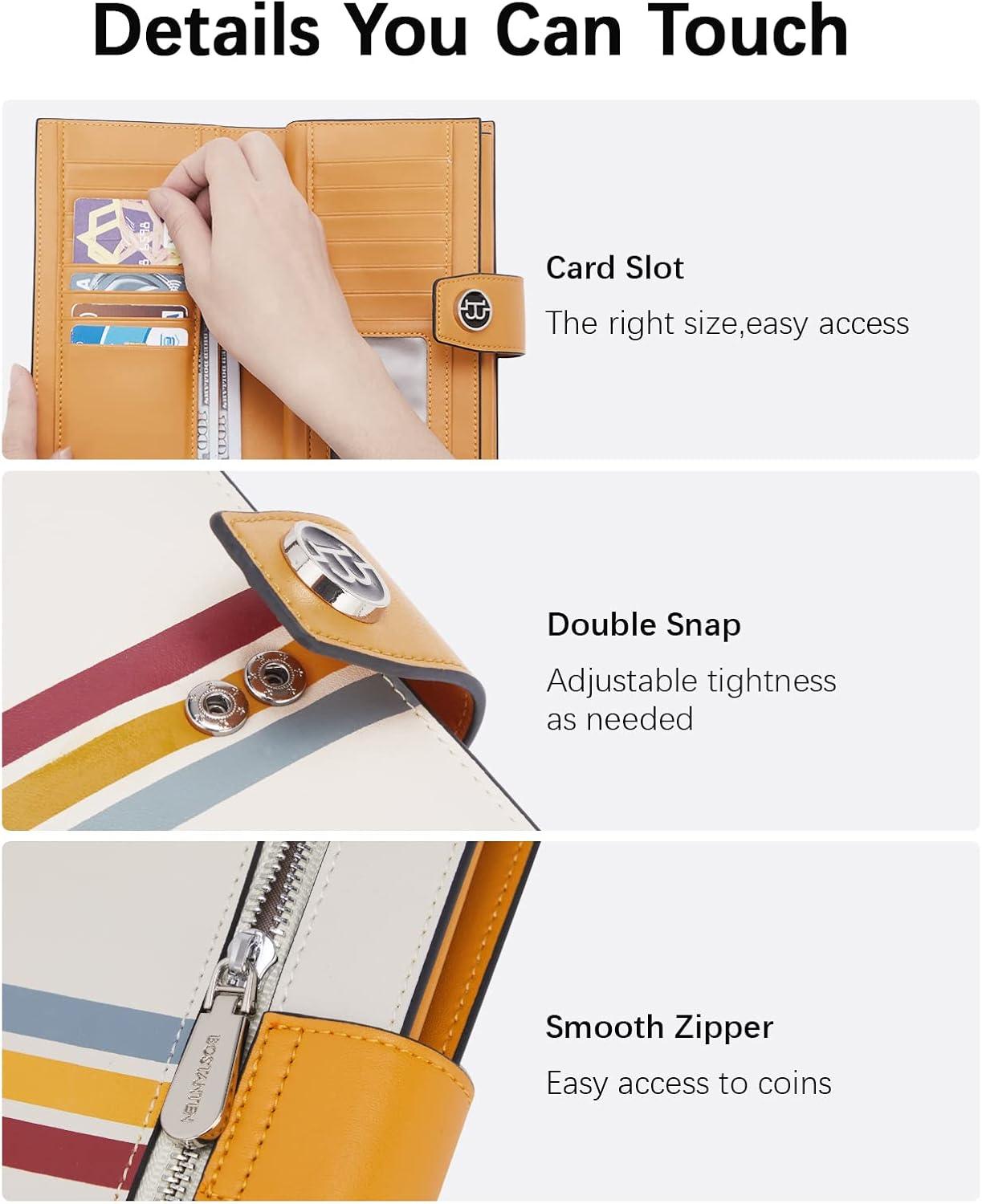 BOSTANTEN Womens Leather Wallets RFID Blocking Large Capacity Trifold Card Holder Ladies Phone Clutch Brown(D-Yellow Beige)