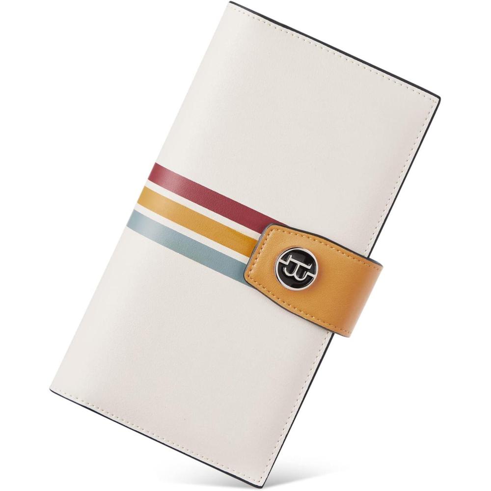 imageBOSTANTEN Womens Leather Wallets RFID Blocking Large Capacity Trifold Card Holder Ladies Phone Clutch BrownDYellow Beige
