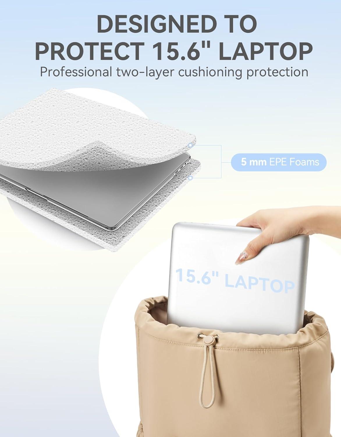 FEATHERWEIGHT: Experience the combination of softness and practicality with our puffy backpack. Crafted from soft and luxurious Taslan fabric, which is super-lightweight, water-resistant and durable, making it the ideal carry-on backpack. Dimensions: 17.2 × 11.7 × 5.5 inches, 1.31 lbs