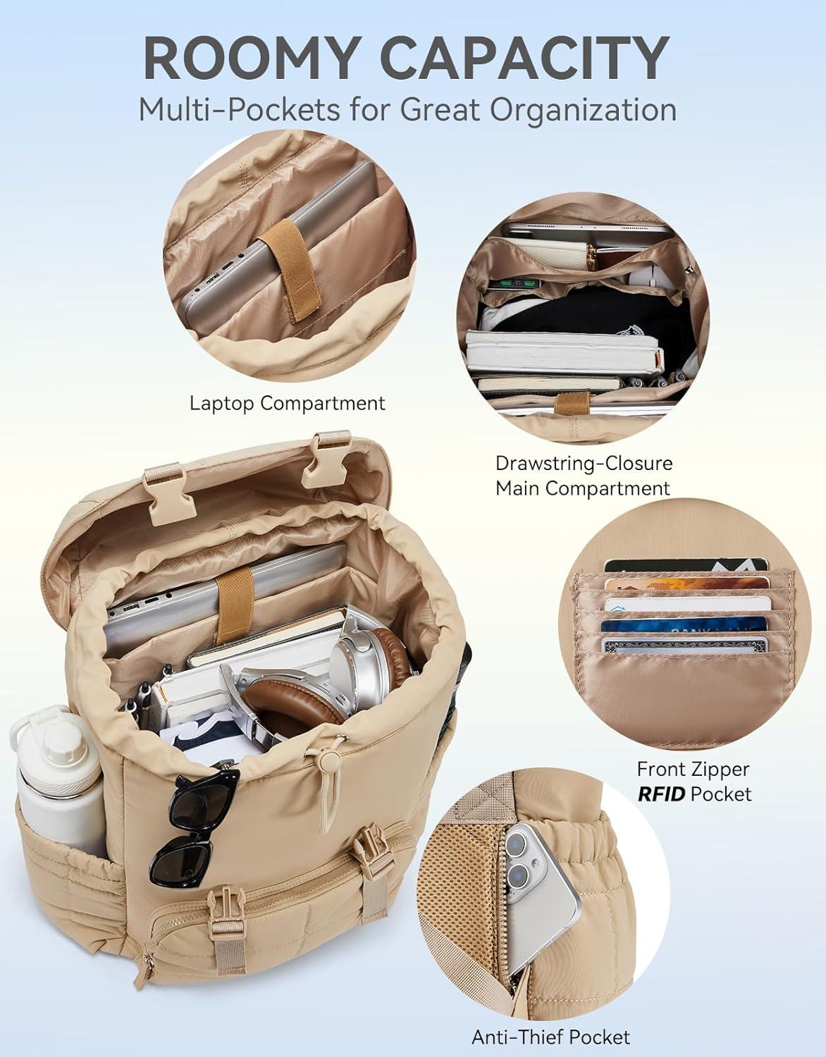 imageBOSTANTEN Womens Puffer Backpack Versatile College Laptop Backpack with RFID Pocket Water Resistant Casual Travel Daypack BlackKhaki