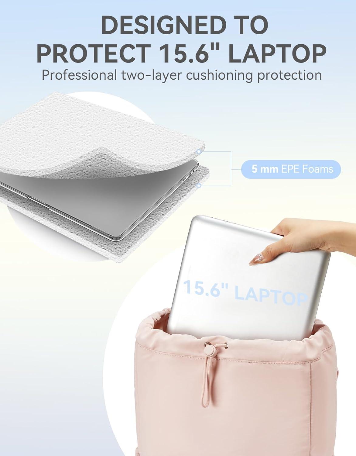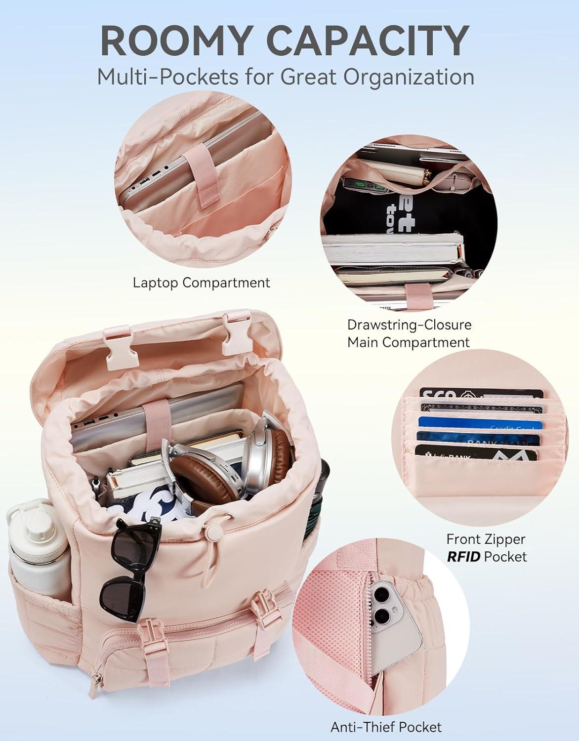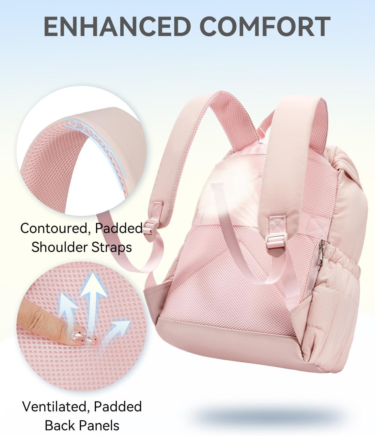 imageBOSTANTEN Womens Puffer Backpack Versatile College Laptop Backpack with RFID Pocket Water Resistant Casual Travel Daypack BlackPink
