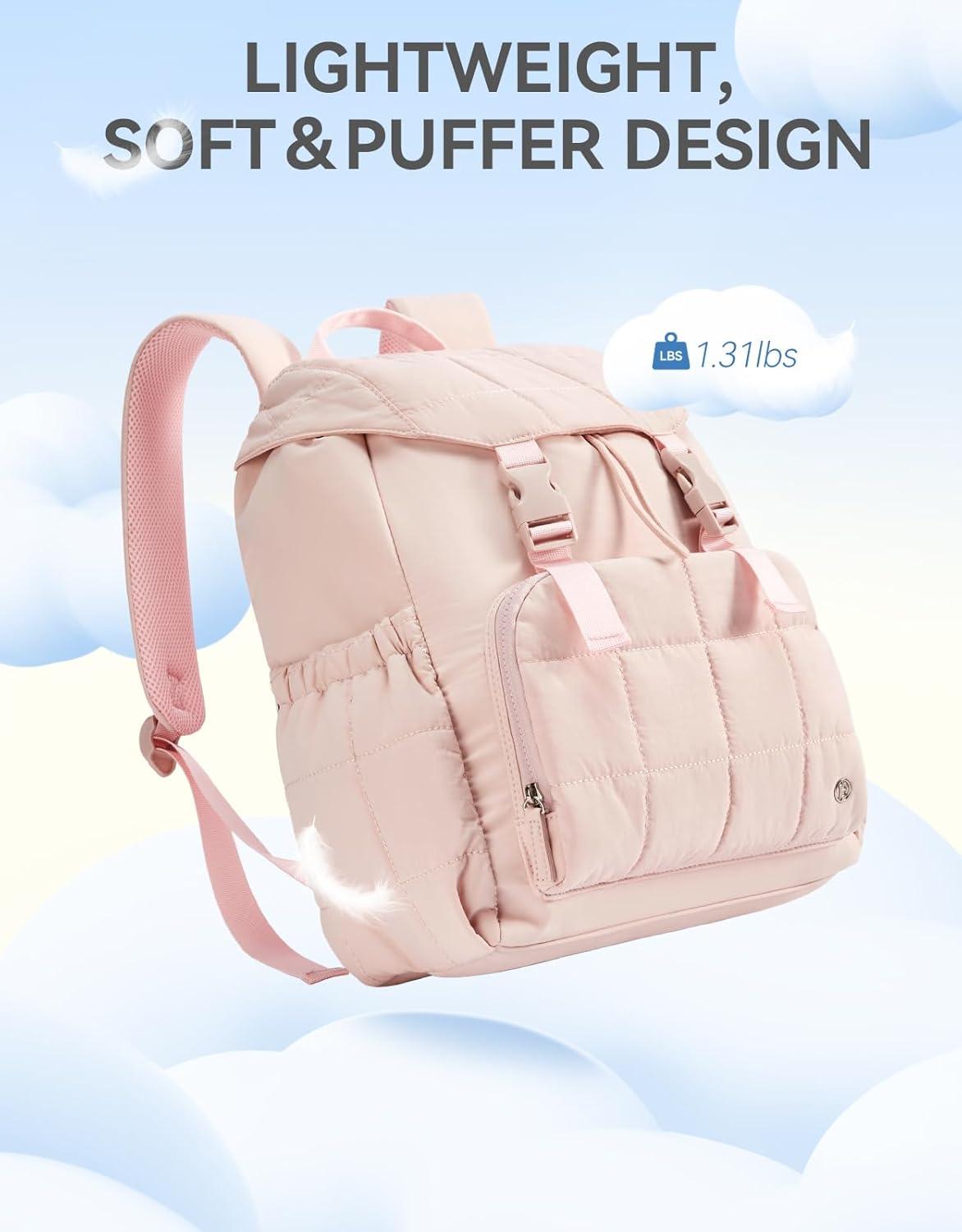 FEATHERWEIGHT: Experience the combination of softness and practicality with our puffy backpack. Crafted from soft and luxurious Taslan fabric, which is super-lightweight, water-resistant and durable, making it the ideal carry-on backpack. Dimensions: 17.2 × 11.7 × 5.5 inches, 1.31 lbs