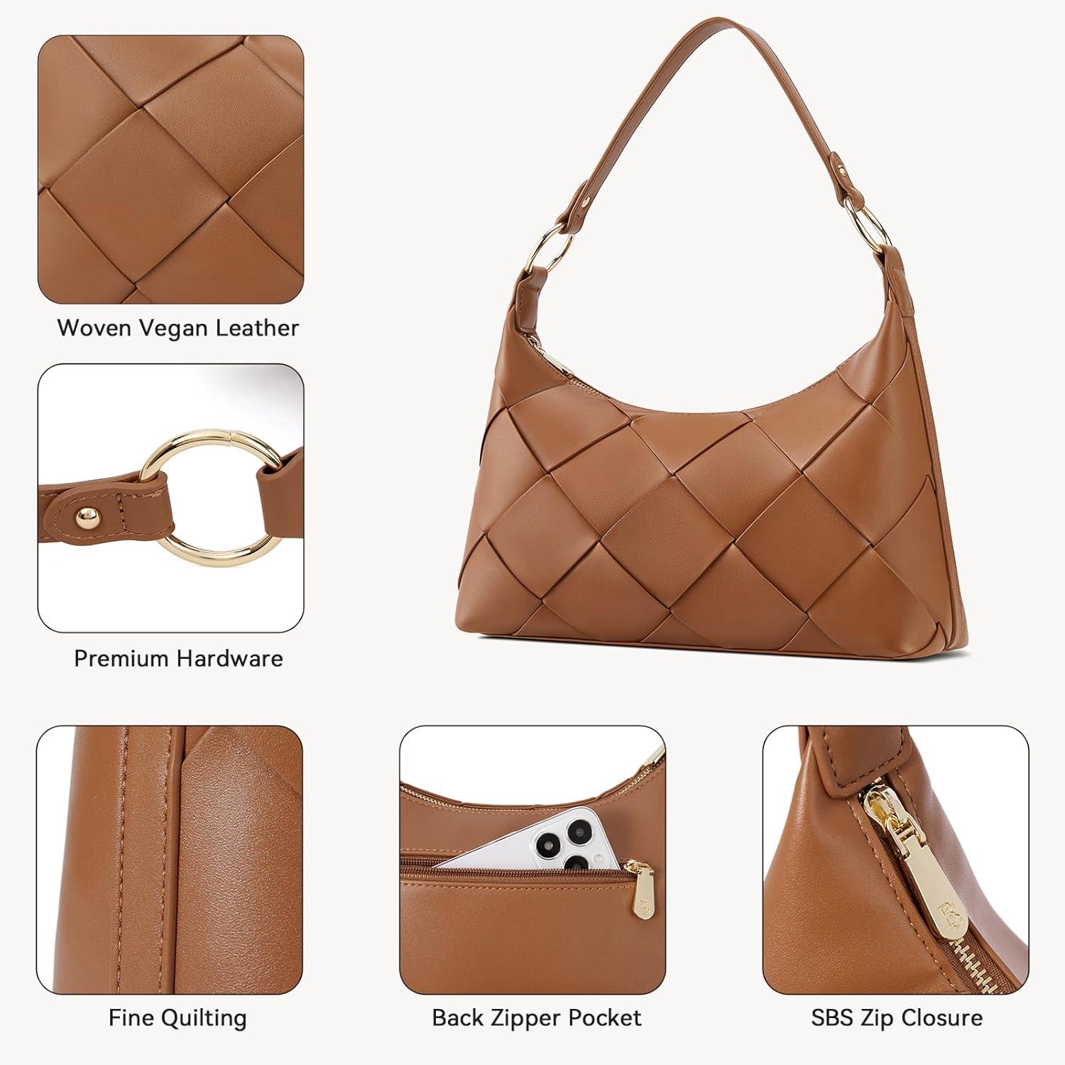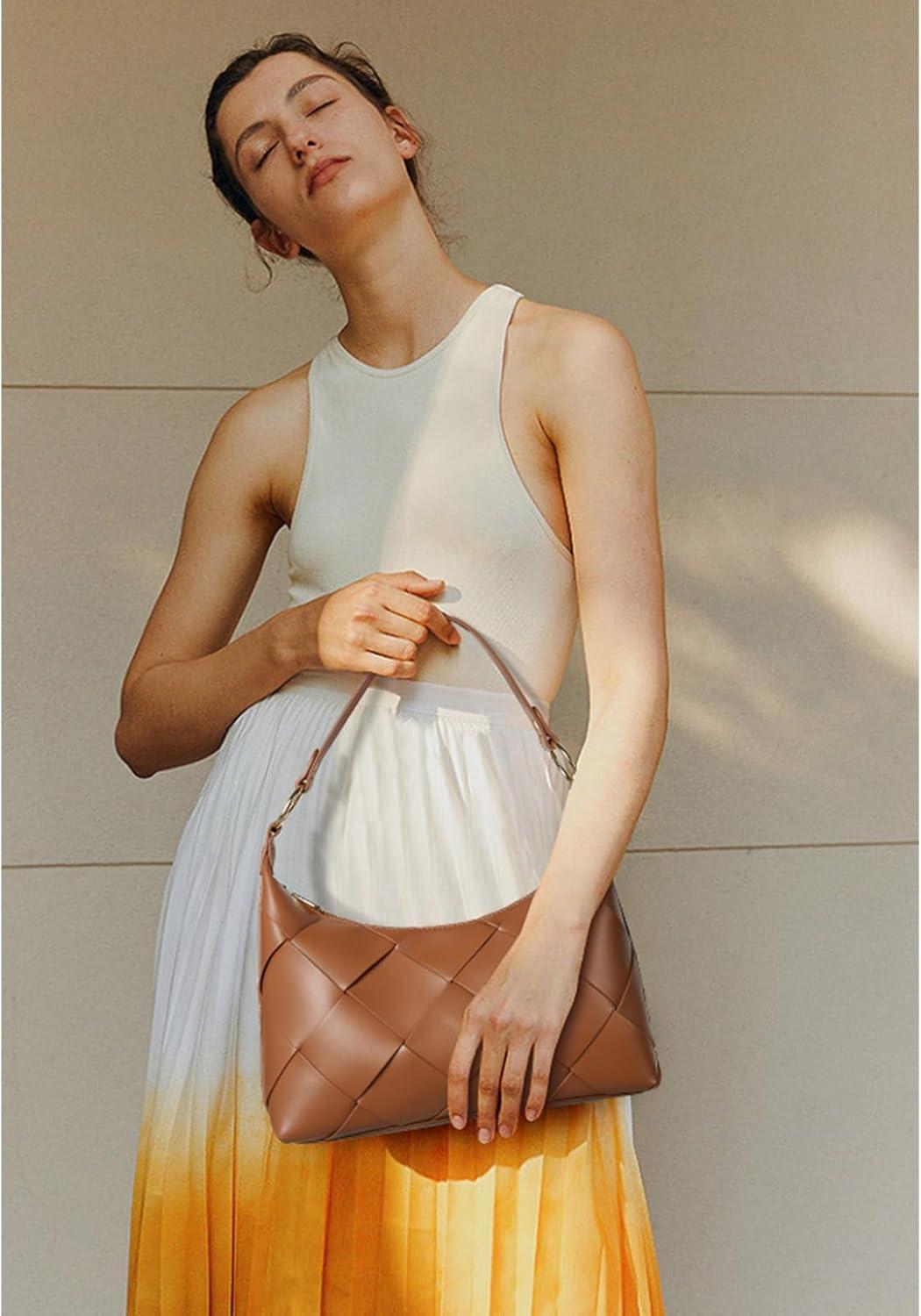 BOSTANTEN Woven Purses for Women Vegan Leather Hobo Bag Shoulder Handbags(Brown)