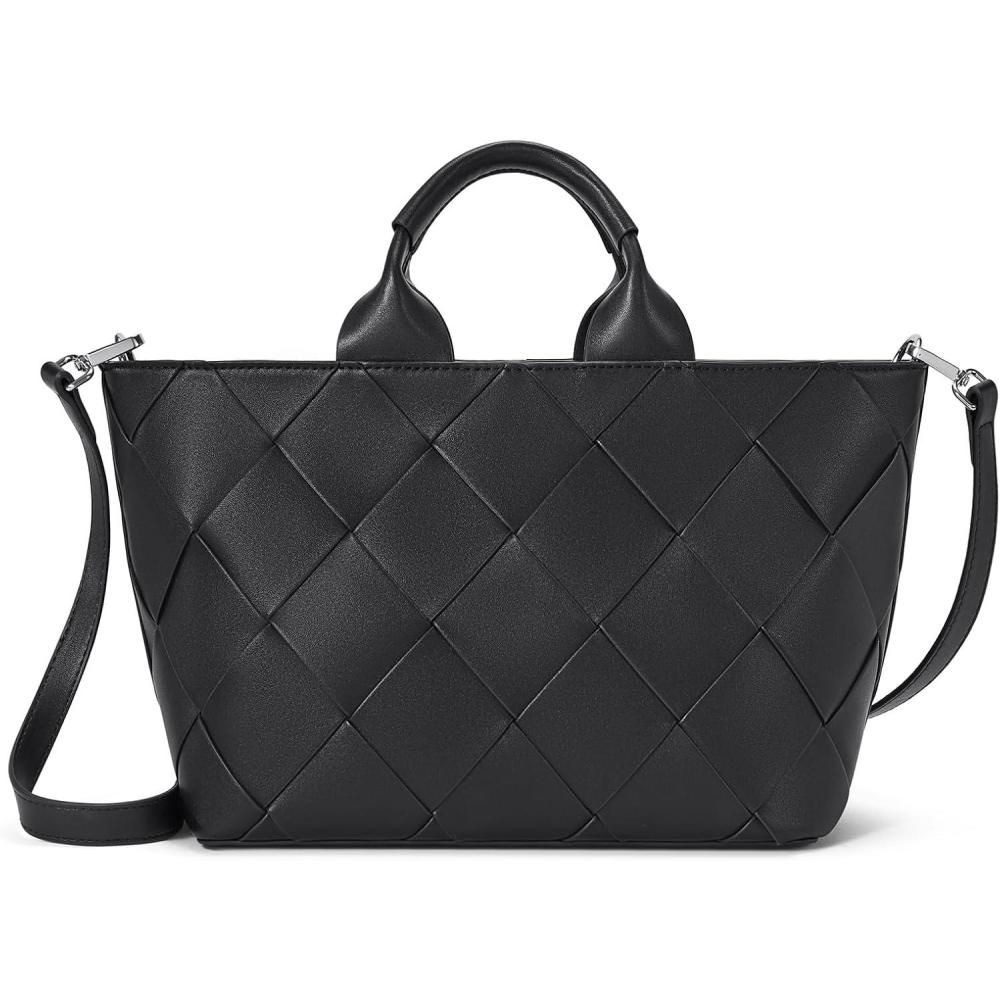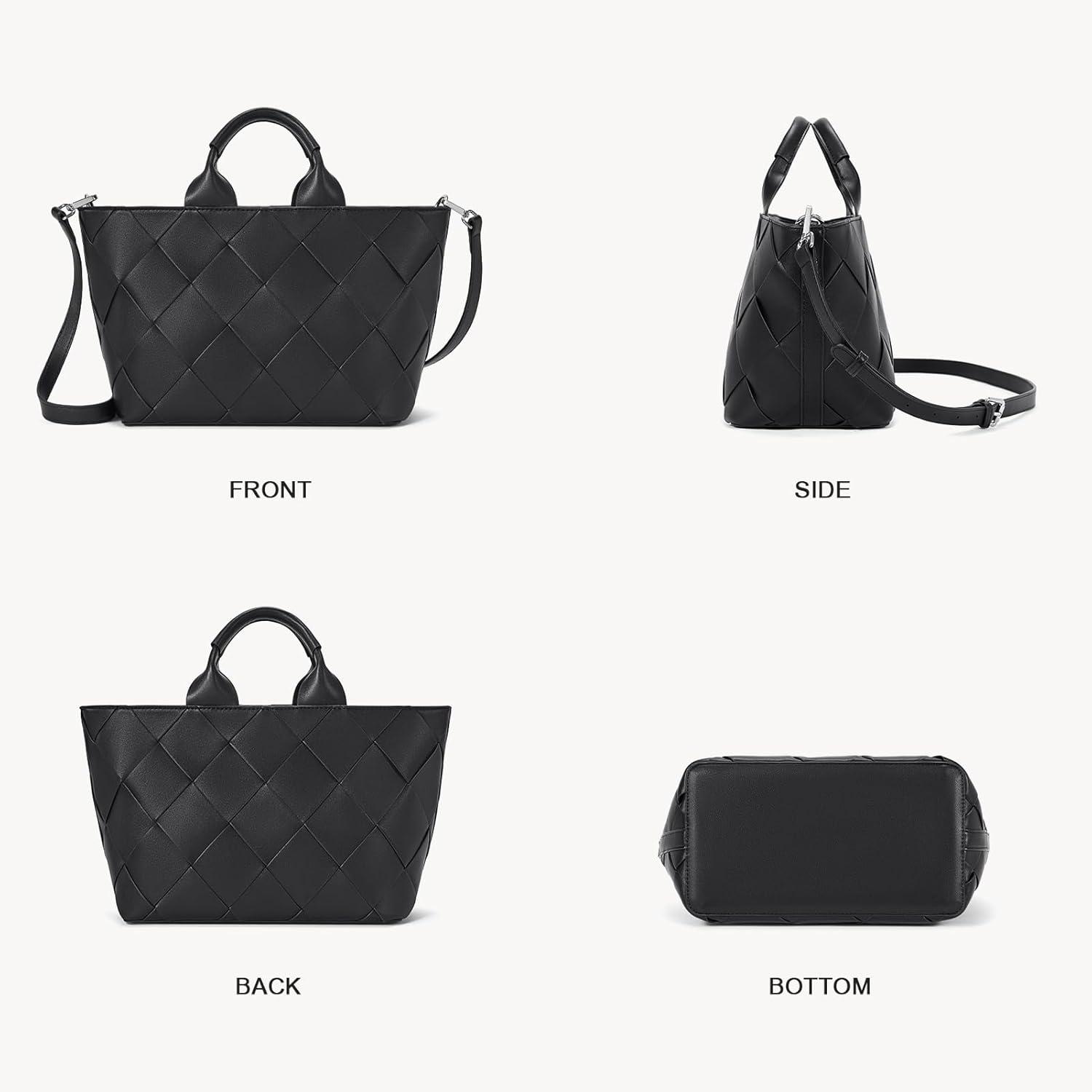 BOSTANTEN Woven Tote Bag for Women Top Handle Purses and Handbags Shoulder Crossbody Purse With Zipper(Black)