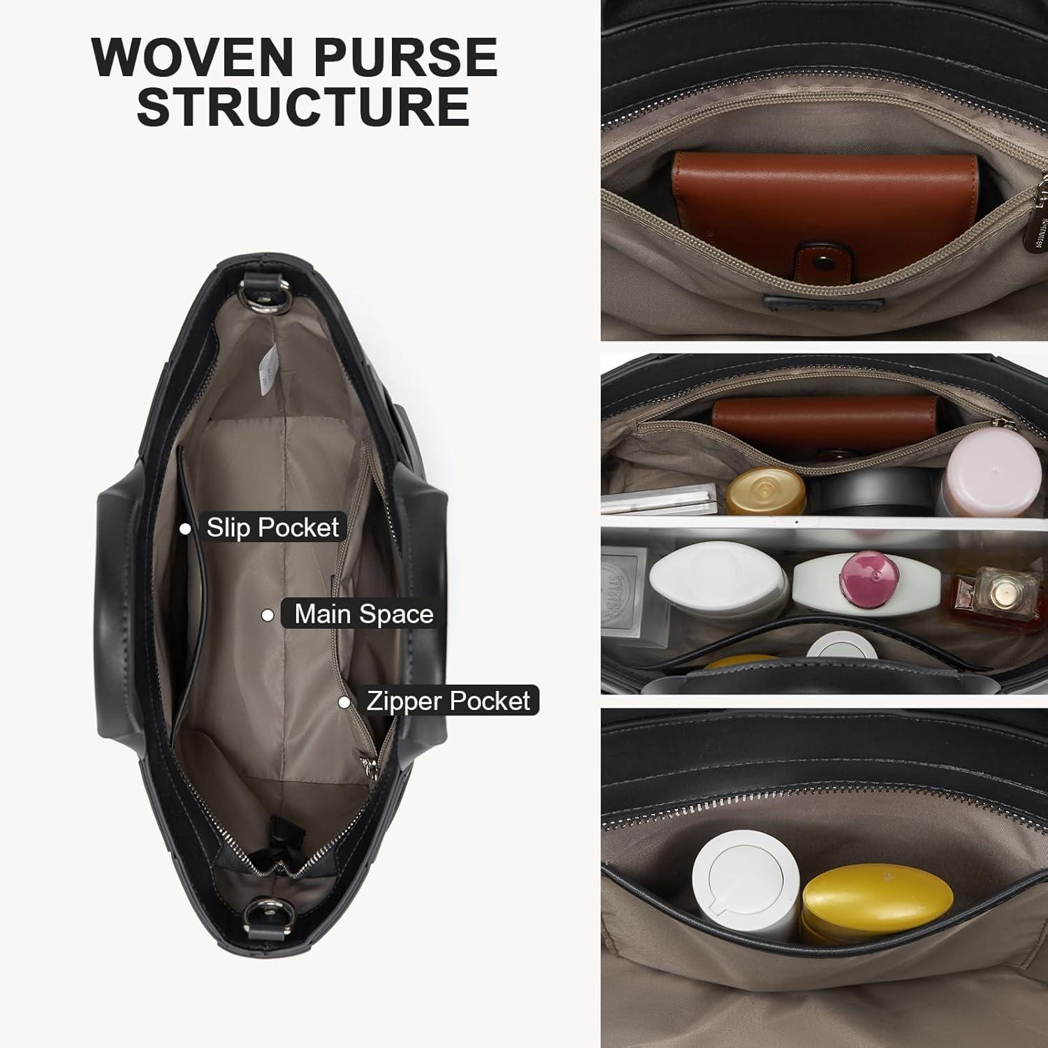 imageBOSTANTEN Woven Tote Bag for Women Top Handle Purses and Handbags Shoulder Crossbody Purse With ZipperBlack